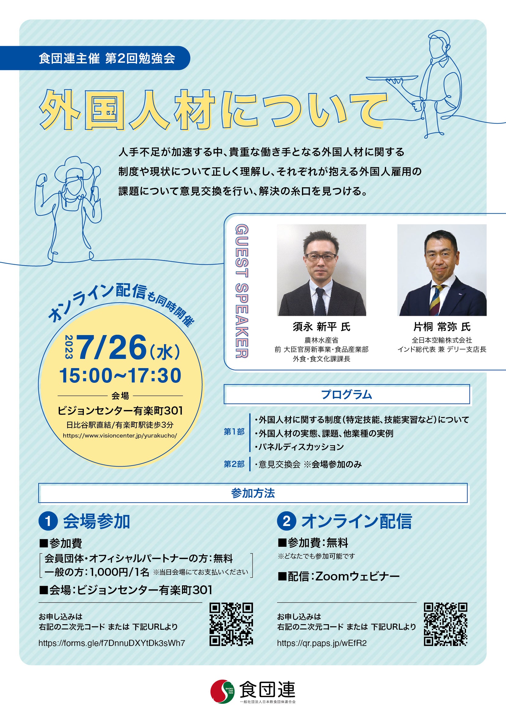 飲食業界で人手不足が加速する中、解決の鍵となる外国人材についての理解を深め、それぞれが抱える外国人雇用の課題について意見交換を行うことです。外国人材に関する制度や現状について理解し、一緒に問題解決の一歩を踏み出すことを目指しています。