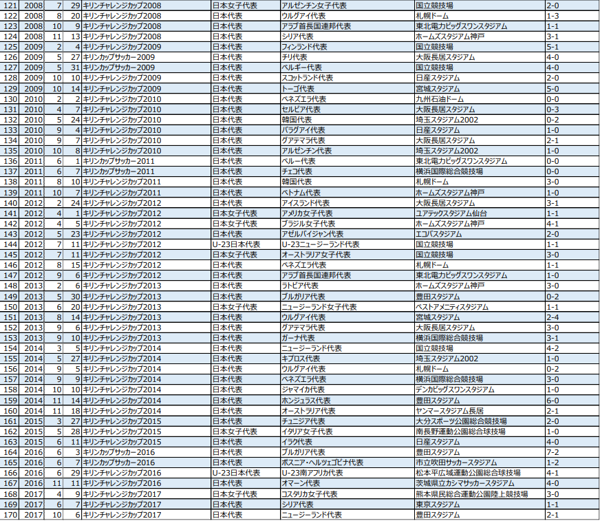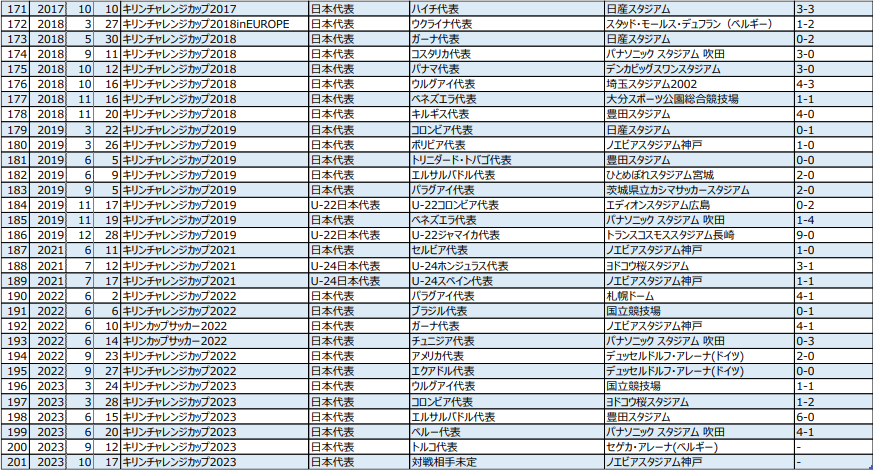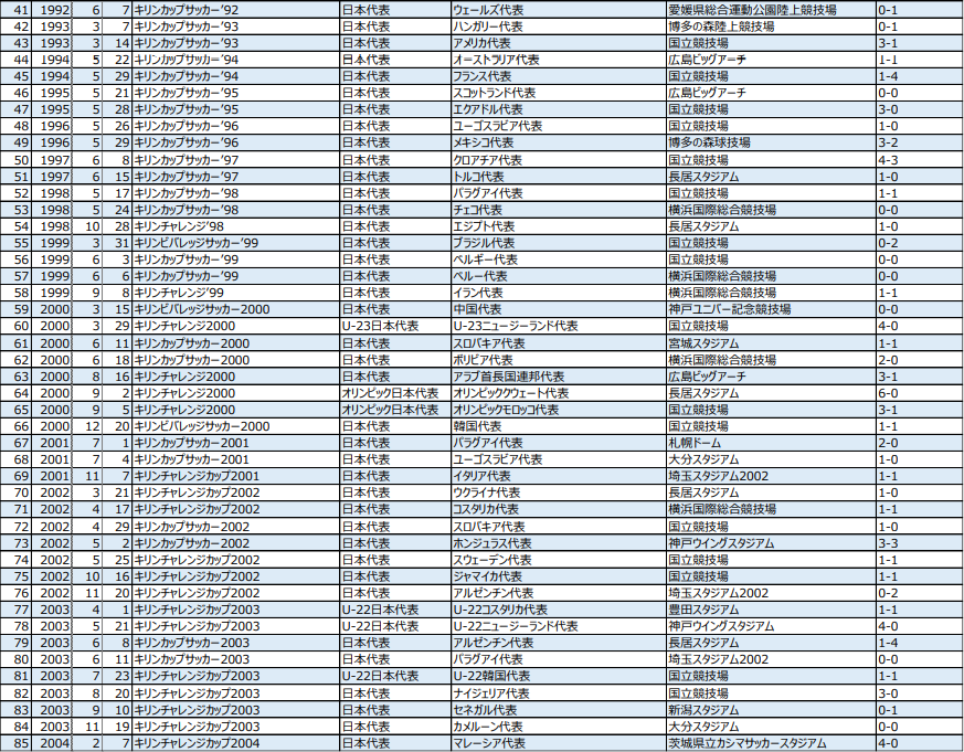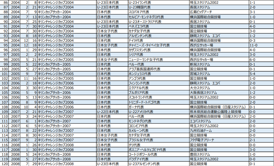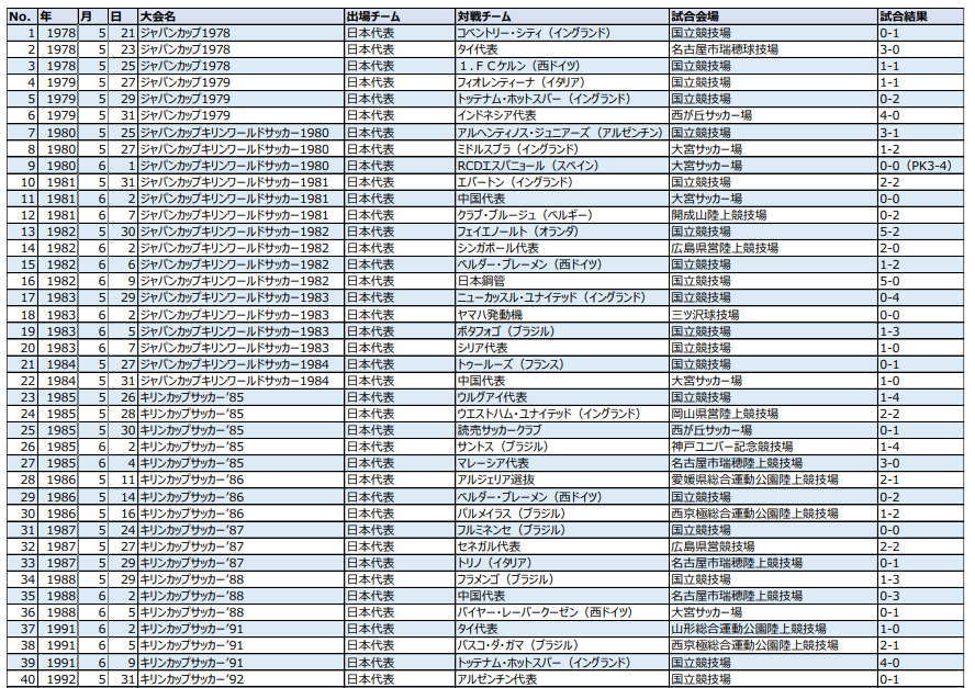 ■ジャパンカップ並びにキリン特別協賛試合一覧