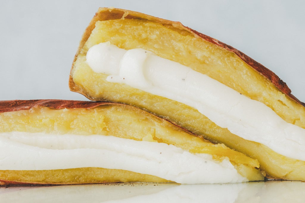 壺芋ブリュレは、従来の焼き芋のイメージを覆すほどに柔らかい壺焼き芋に、クリームをたっぷり詰めてブリュレしたお芋スイーツ。初登場「ひんやり塩バニラクリーム」は、バニラビーンズが香るバニラクリームに、地中海のミネラルをたっぷり含んだシチリア産海塩を合わせた夏に手を伸ばしたくなる期間限定フレーバーです。