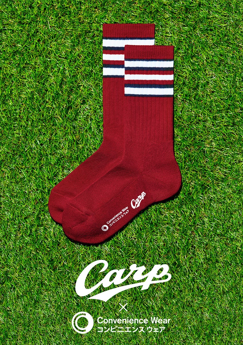 【内容】「広島東洋カープ」のチームカラーであるレッドをモチーフに配色し、足底にはコンビニエンスウェア、カープのWネームのラバープリントを施しております。足底はパイル編みの肉厚仕様です。抗菌防加工でニオイにくい仕様です。