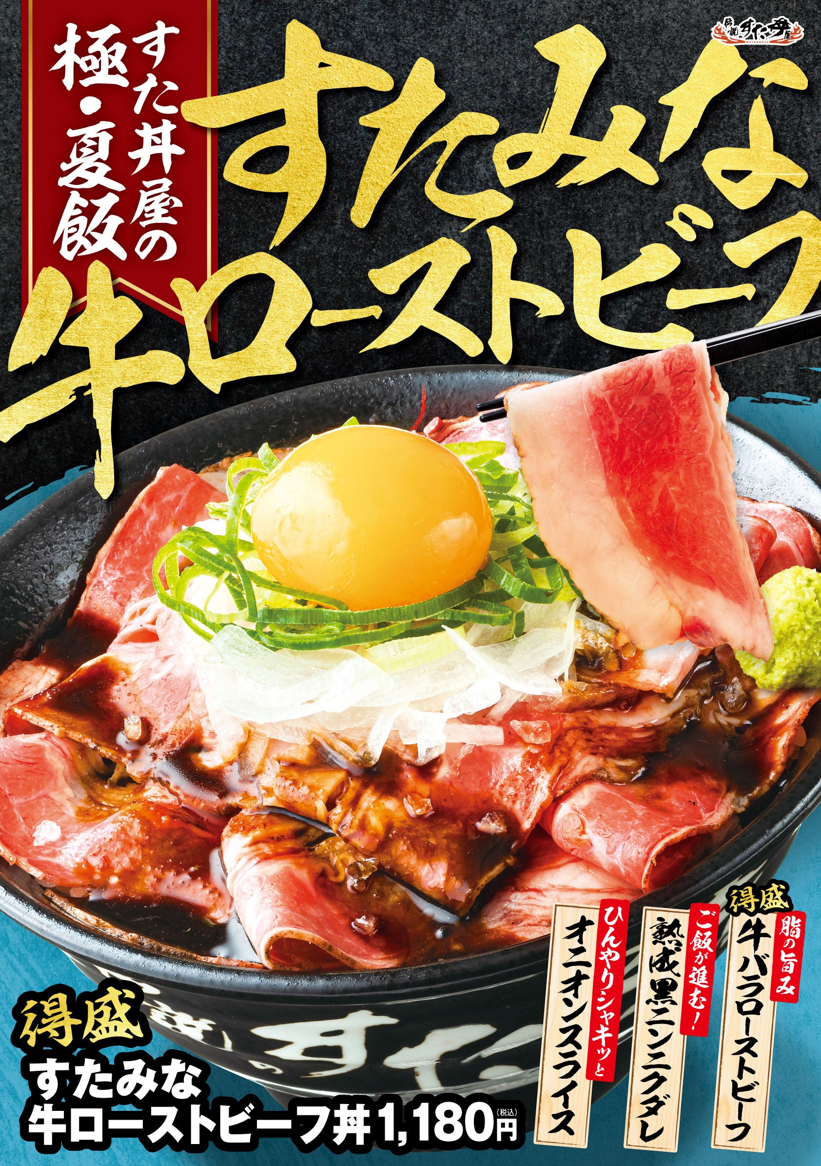 7月に入り、酷暑が続いています。先週末群馬県では今年最高気温の39.7℃を記録するなど、危険な暑さとなっております。それにより、夏バテや水分不足・塩分不足による体調不良を感じられている方も多いのではないでしょうか。『食を通じて、日本全国さらには世界の人々の底力となる』を企業理念としている当店では、この酷暑だからこそすたみなをつけて多くの方に元気になっていただき、頑張って欲しいという想いがございます。そこで、すた丼屋のロングセラー商品でこの時期でもさっぱりと召し上がることができるローストビーフ丼を改良し、販売することを決定いたしました。