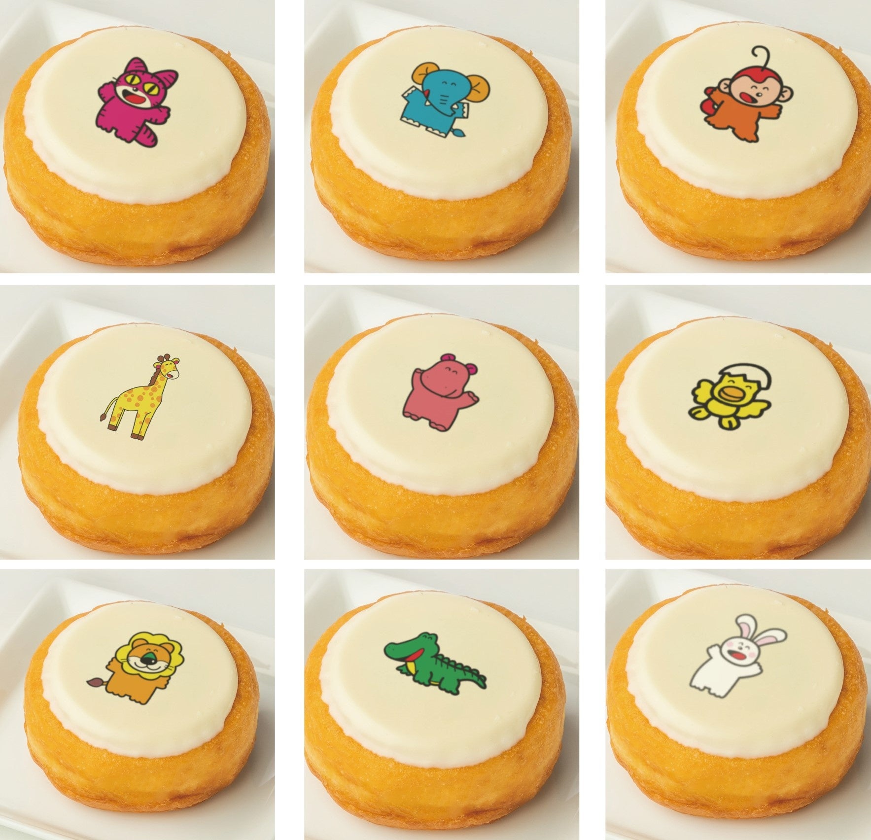 前回大人気だった「どうぶつスイートドーナッツ」に新たに、ねこさん・ぞうさん・ひよこさん・らいおんくん・わにさん・うさぎさんが仲間入り。今回初登場の『たべっ子どうぶつLAND』オリジナルのバーガー袋に入れて、全9種の中からランダムで提供いたします。味はキャラメルとチョコホイップの2種からお選びいただけます。
