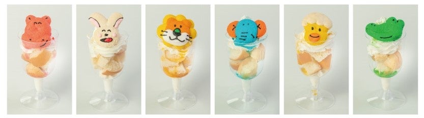 大好評の「ころんとどうぶつマカロン」がパフェになって新登場。かばさんとうさぎさんも仲間入りし、全6種のどうぶつマカロンをお楽しみいただけます。