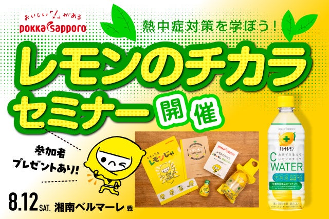 8月12日(土)湘南ベルマーレ戦の試合会場で、夏場のレジャー活動での熱中症対策について啓発するため、オフィシャルクラブパートナーであるポッカサッポロフード&ビバレッジ株式会社のご協力で、「レモンのチカラセミナー」を開催いたします。