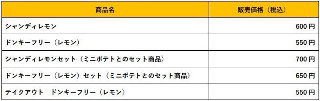 これと同時に、ミニサイズのフライドポテトとビールを一緒に愉しめる「シャンディレモンセット」と「ドンキーフリー(レモン)セット」も登場します。