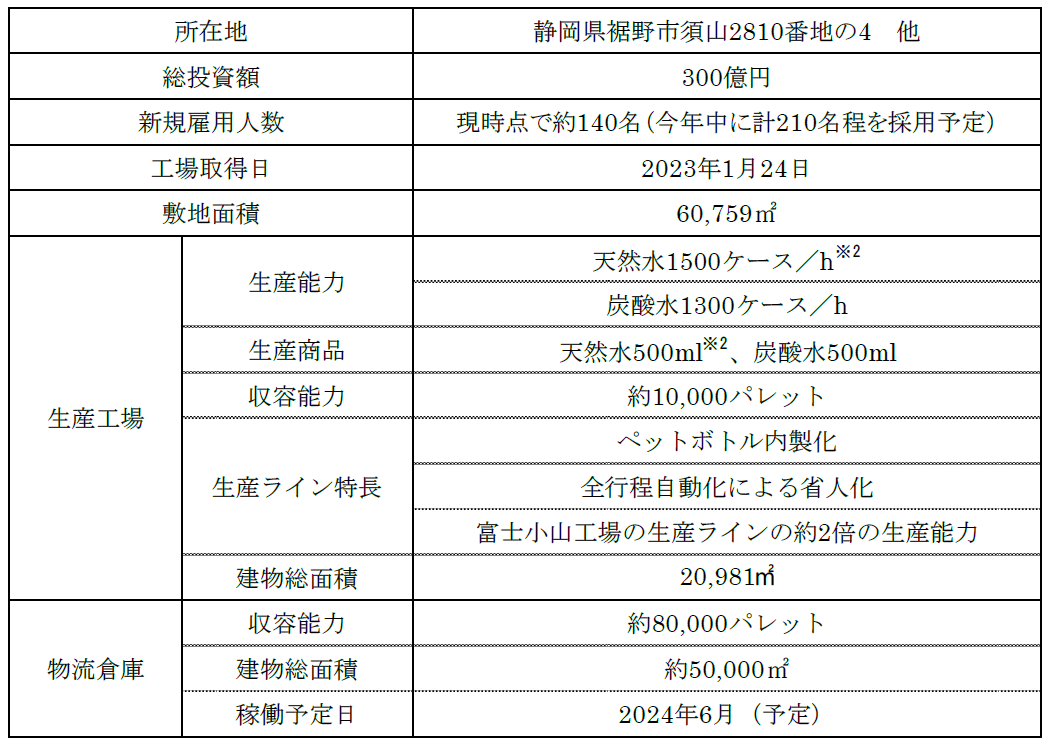 ※2:富士裾野工場の天然水ラインは23年10月稼働予定。