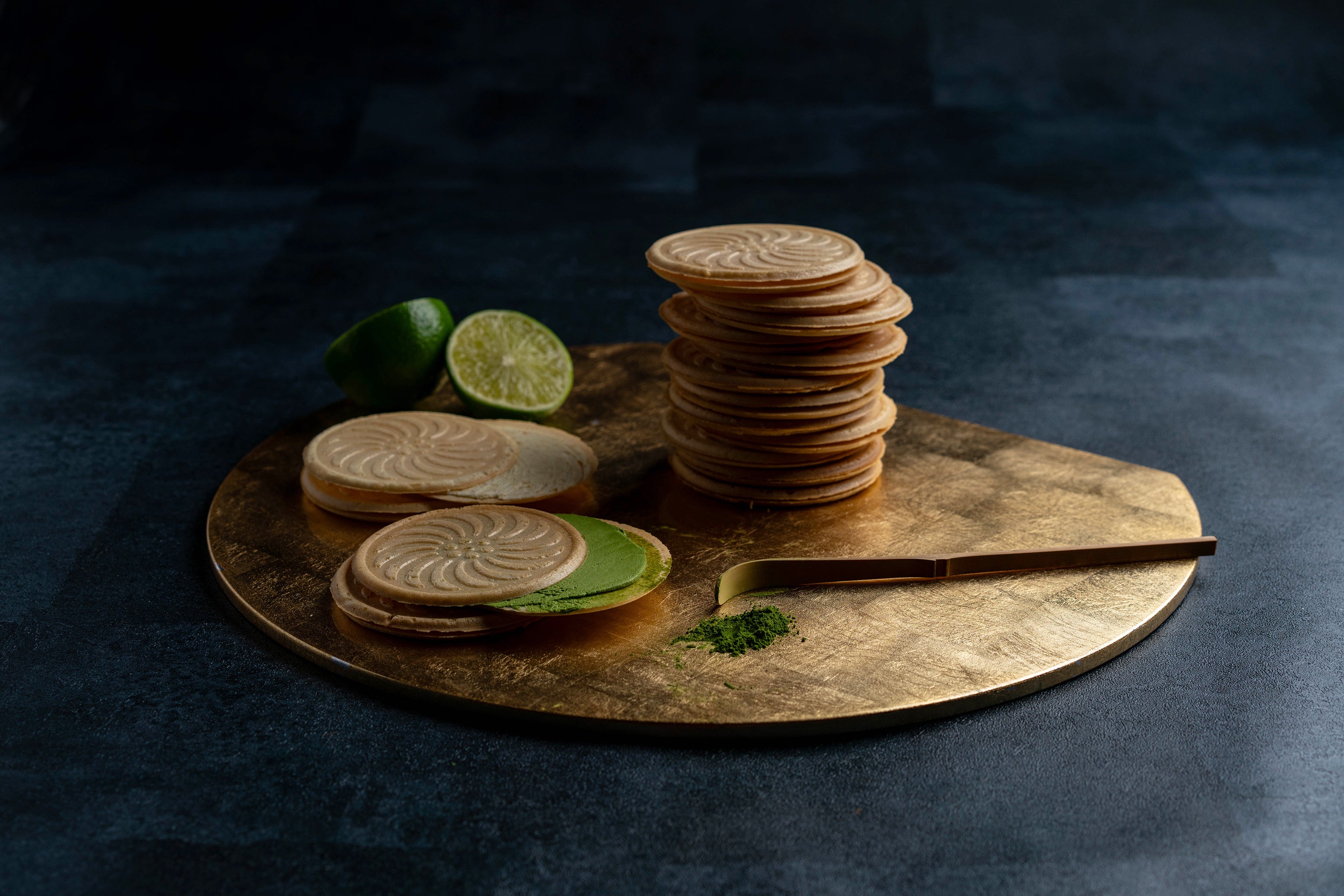 抹茶と柚子、2種類のクリームを薄焼きの生地でサンドした「和ゴーフレット」