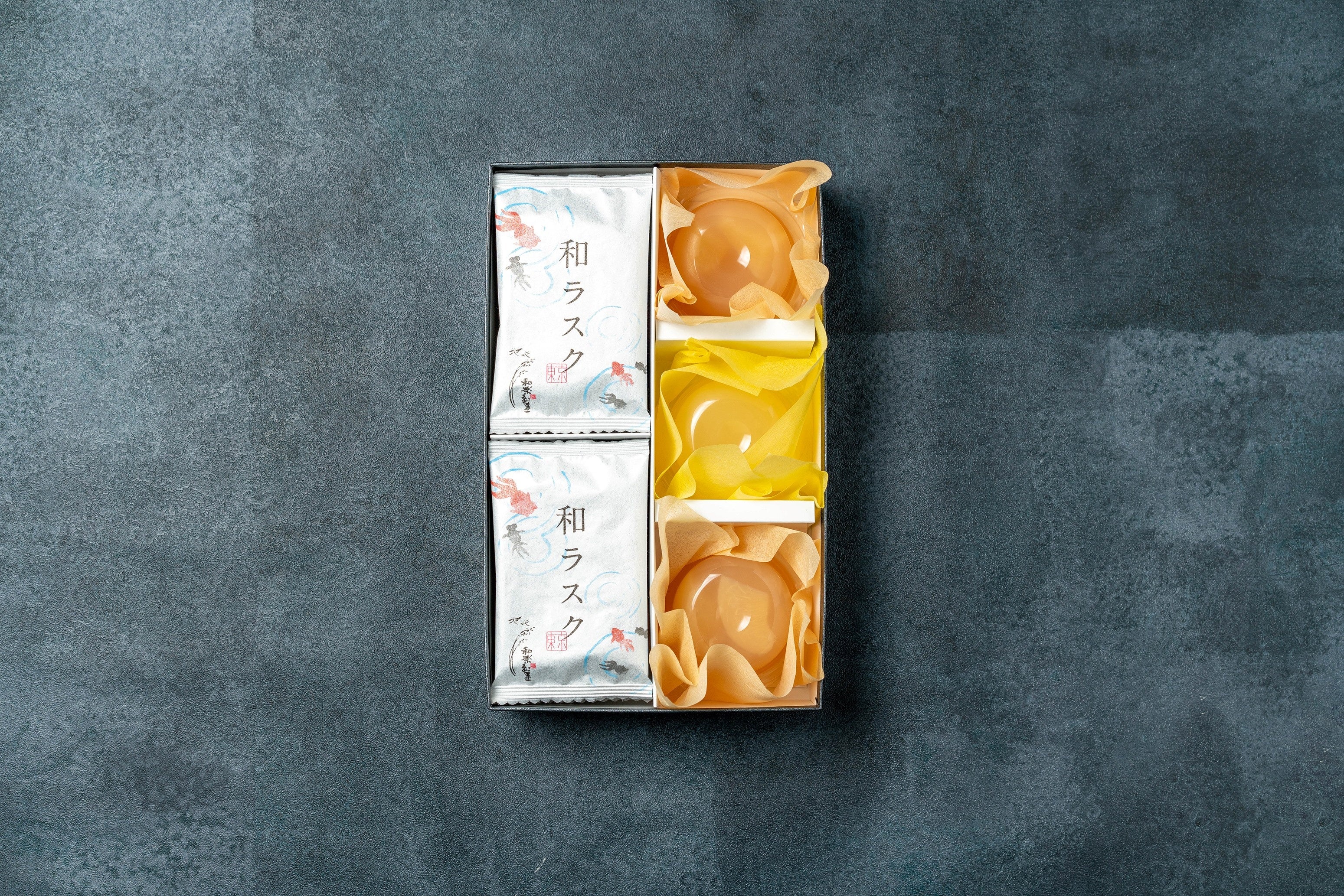和梨ぜりぃ1個、白桃ぜりぃ2個、和ラスク8枚 (合計11個)