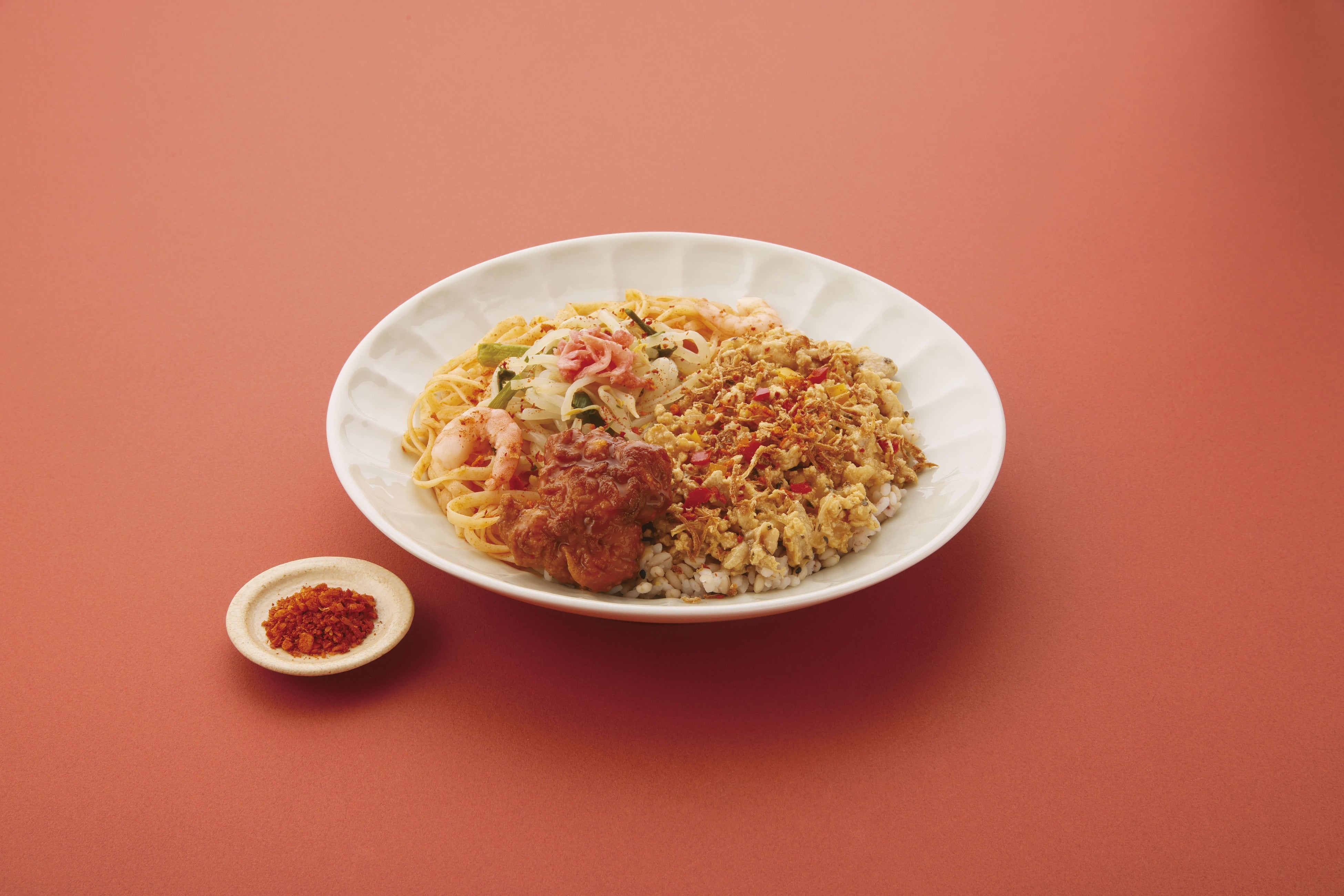 人気の「ガパオライス&パッタイ」に期間限定でレッドホットチリスパイスが付きます!辛味を足して味変し、お好きな辛さに調節してお召し上がりください。真夏に食が進む1品です。