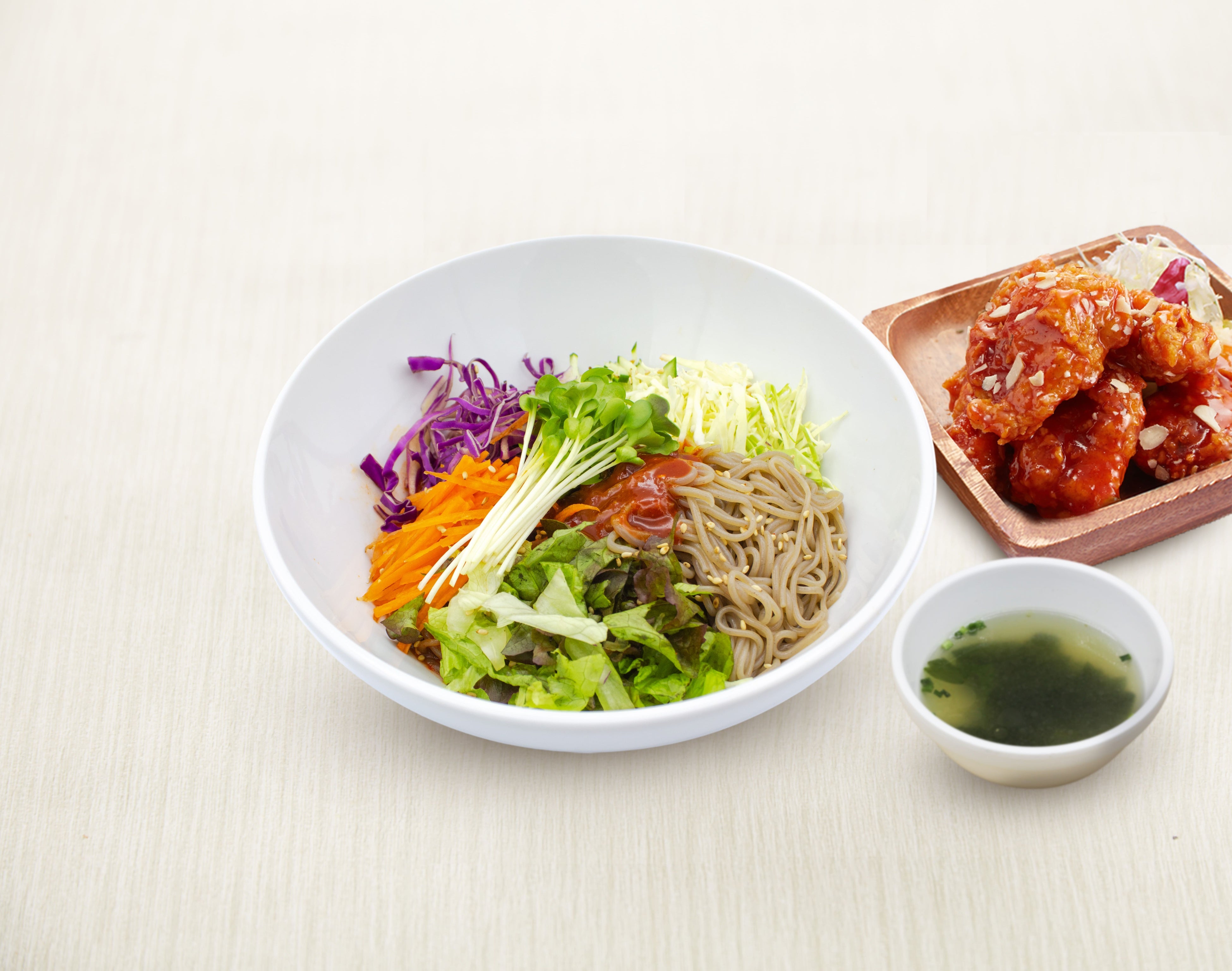 人気の甘辛ヤンニョムチキンを3つ付けたセットでお楽しみいただけます。「冷・辛・酸」の刺激を全て併