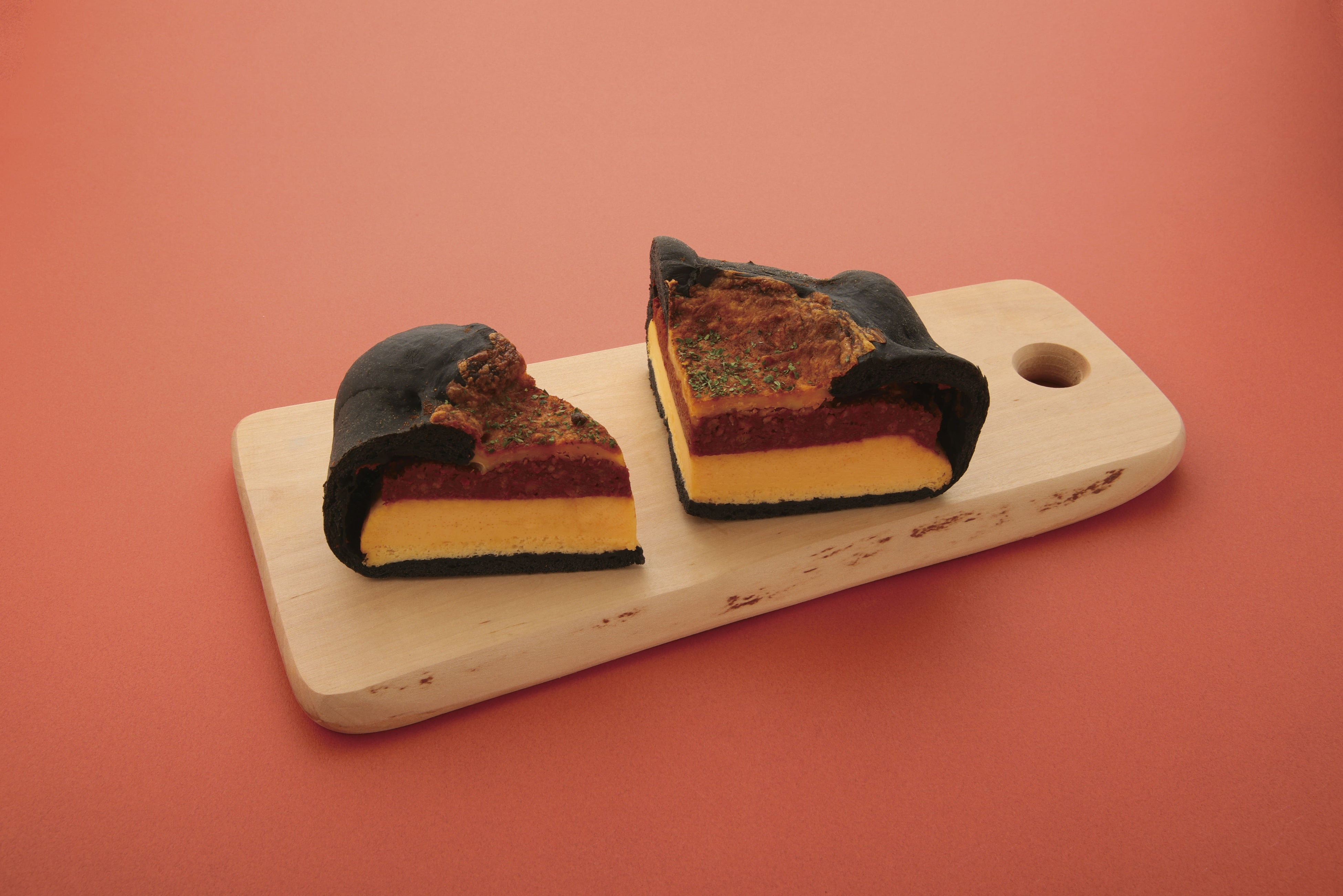 栗豚100%使用の贅沢カレー。厳選唐辛子を織り交ぜた幻の赤キーマ。自慢の黄金のオムレツと炭Black生地のインパクトで暑い夏を乗り切ろう。