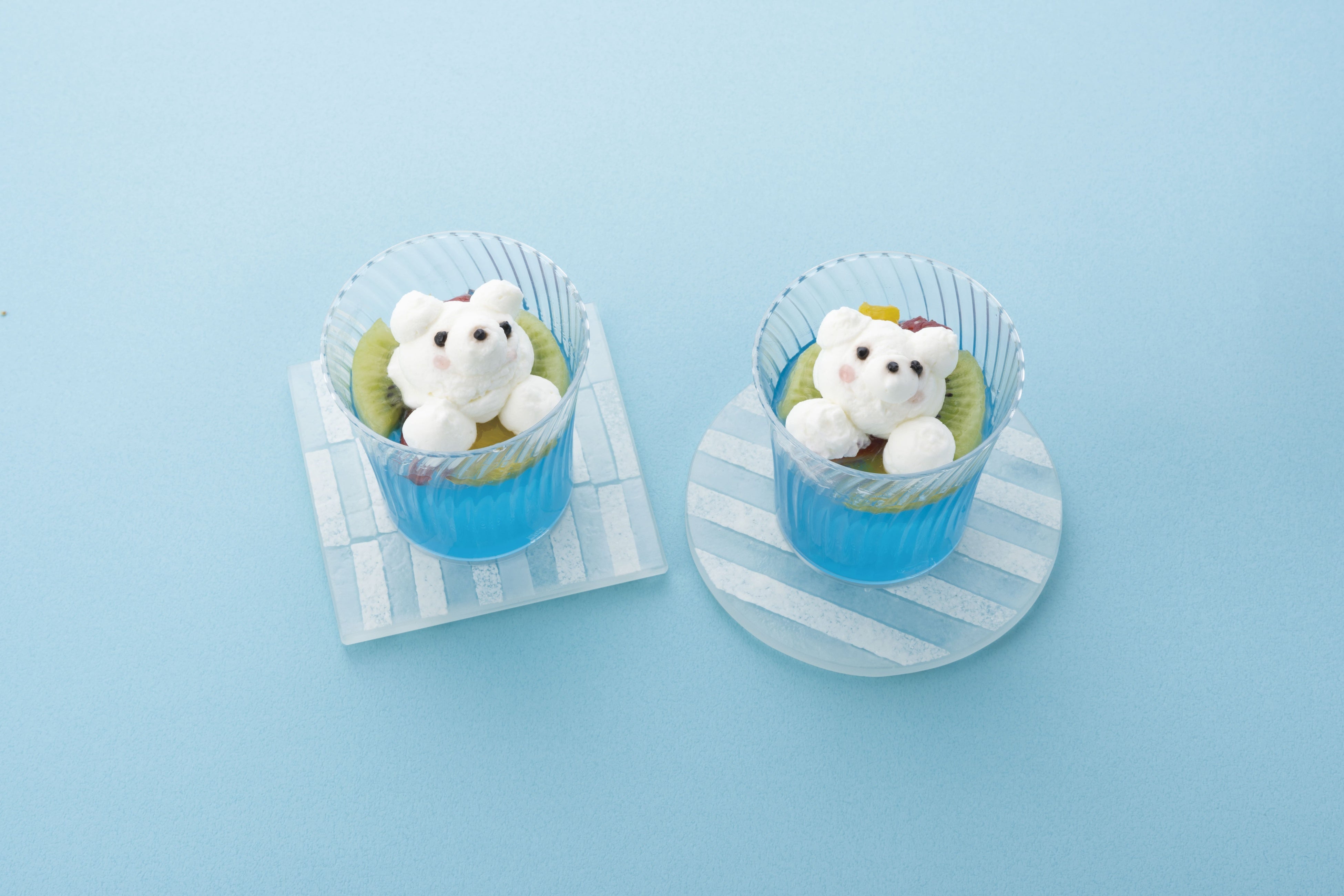 爽やかなブルーハワイのゼリーに、かわいらしいクマが乗った、見た目にも涼やかな“ひんやり”スイーツです。