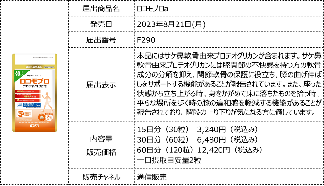 そしてこの度、「DyDoヘルスケア」の主力商品である「ロコモプロ プロテオグリカン配合」を、機能性表示食品としてリニューアルすることで、商品パッケージに機能が表示できるようになり、これまで以上にお客様に分かりやすく選びやすい商品に生まれ変わりました。