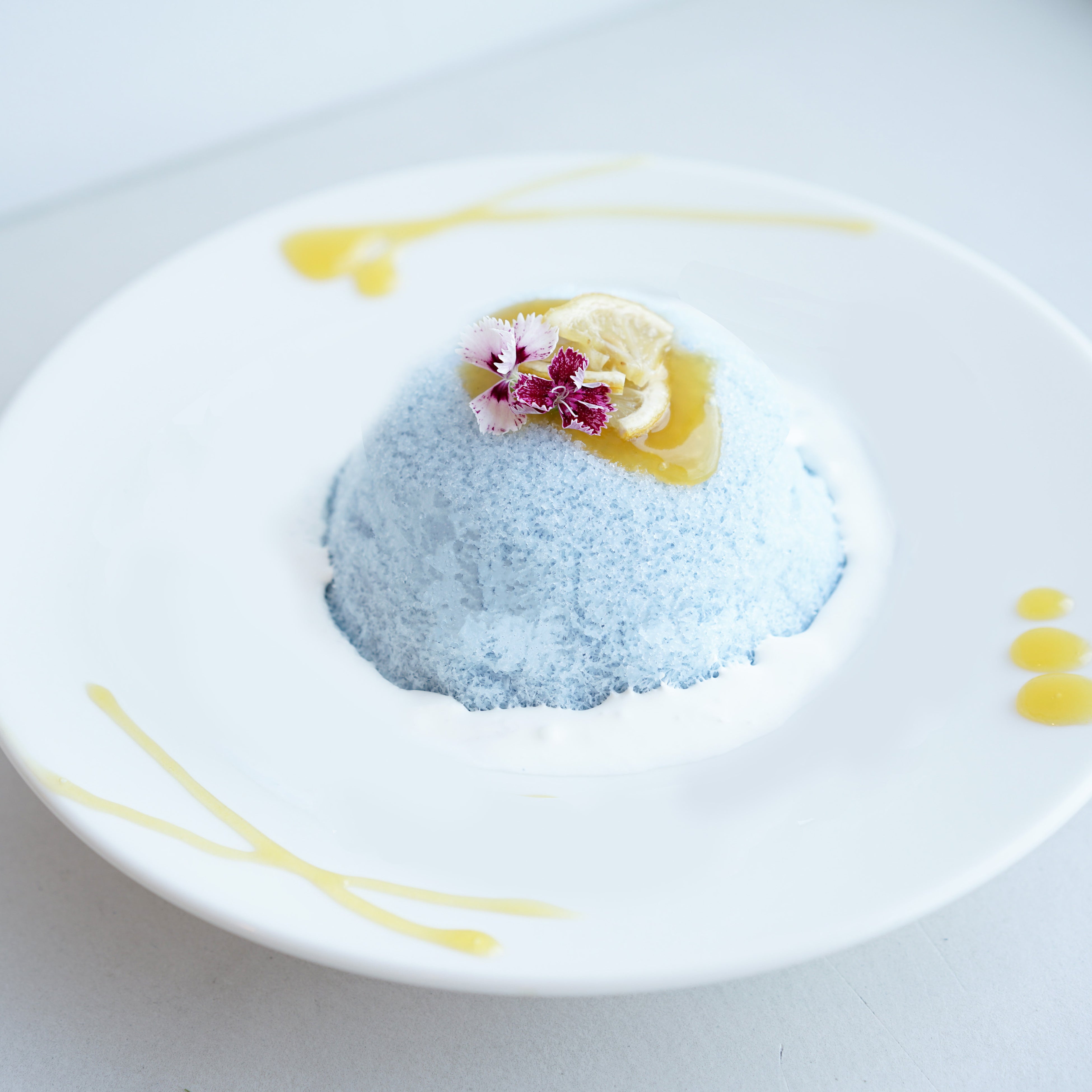 夏に人気の韓国式かき氷のふんわりピンスにも海をイメージしたブルーカラーのピンスが仲間入り。バタフライピーのすっきりとした味わいのかき氷で、夏にぴったりの一品。