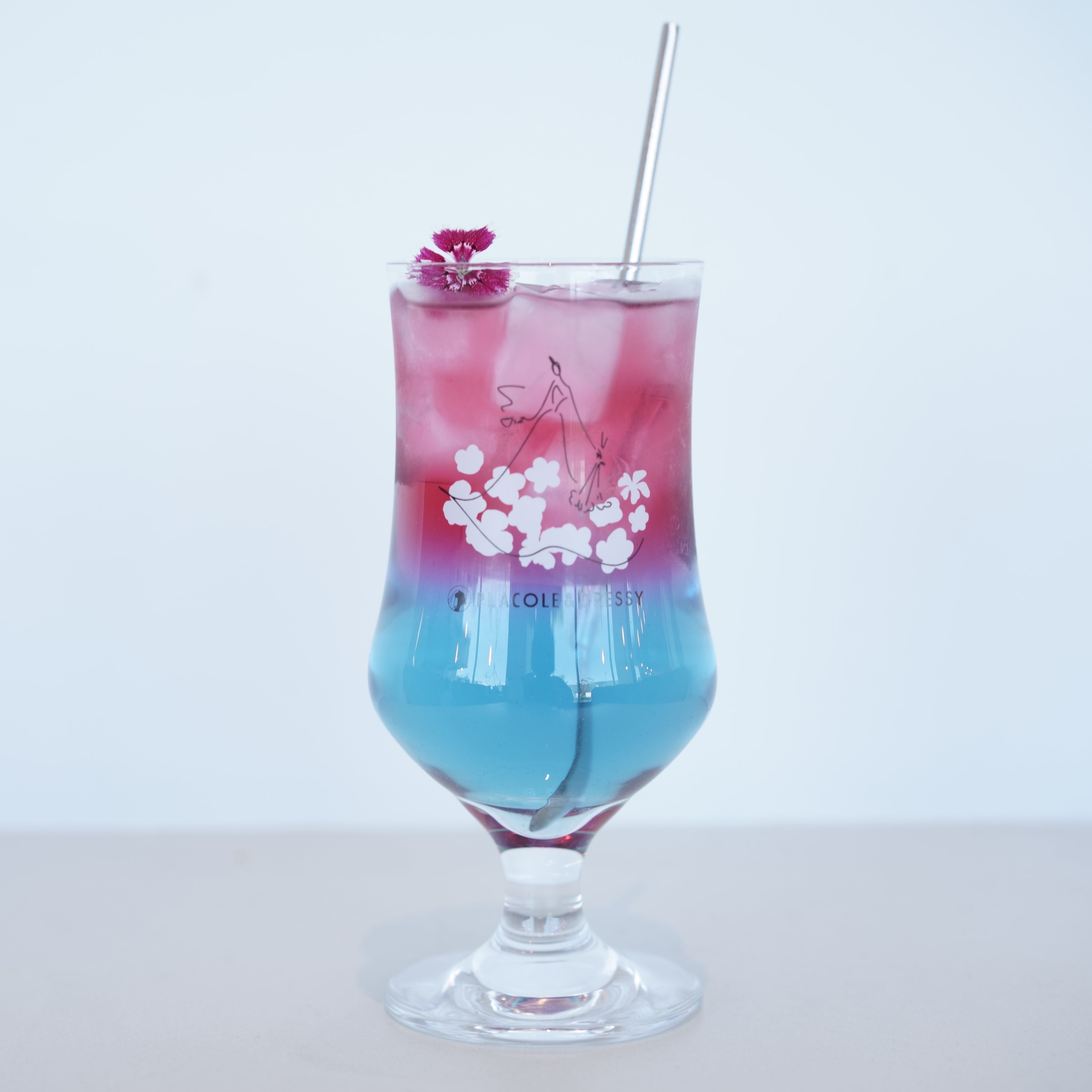 オリジナルブレンドティーを使用したスペシャルカクテルにもマーメイドカラーをイメージしたカクテルが仲間入り。ブルーとレッドの2層からなるカクテルは、混ぜると魅惑的なパープルカラーに早変わり、フォトジェニックな見た目で推し活にもおすすめ。ノンアルコールも対応可能
