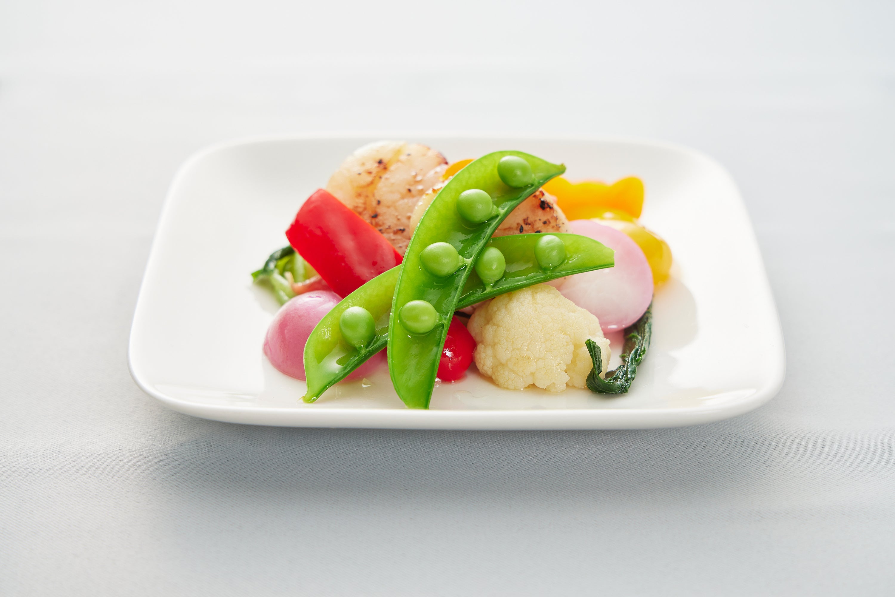 季節野菜のエチュベと帆立貝のグリル Seasonal vegetable etuver and grilled scallops