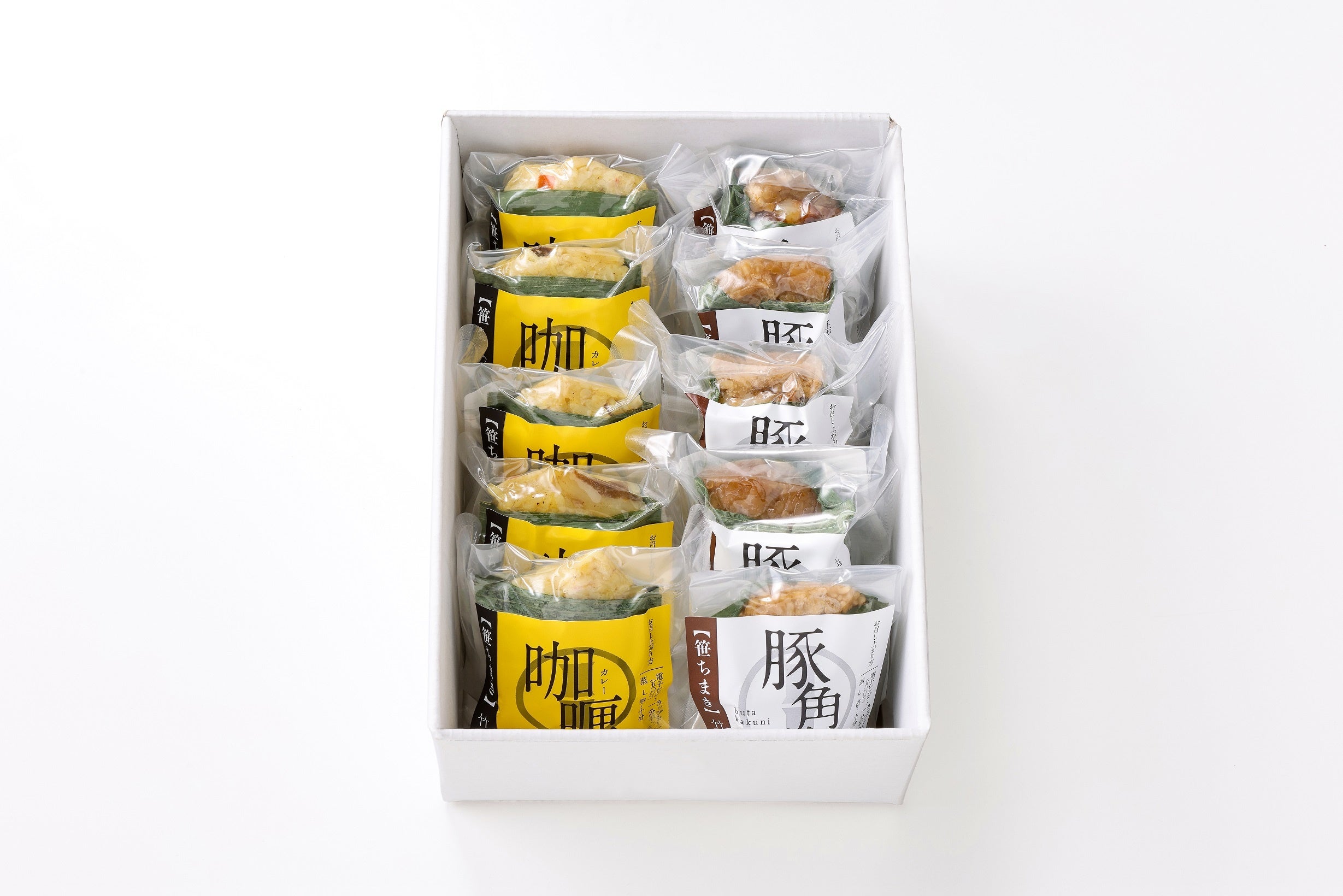 (カレーちまき×5個、豚角煮ちまき×5個)