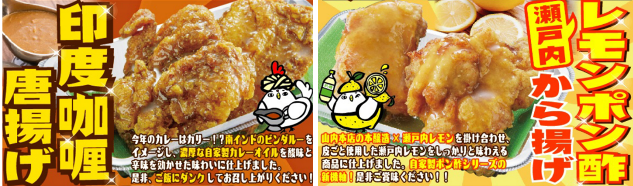 ■商品 :「印度咖喱唐揚げ」、「レモンポン酢から揚げ」