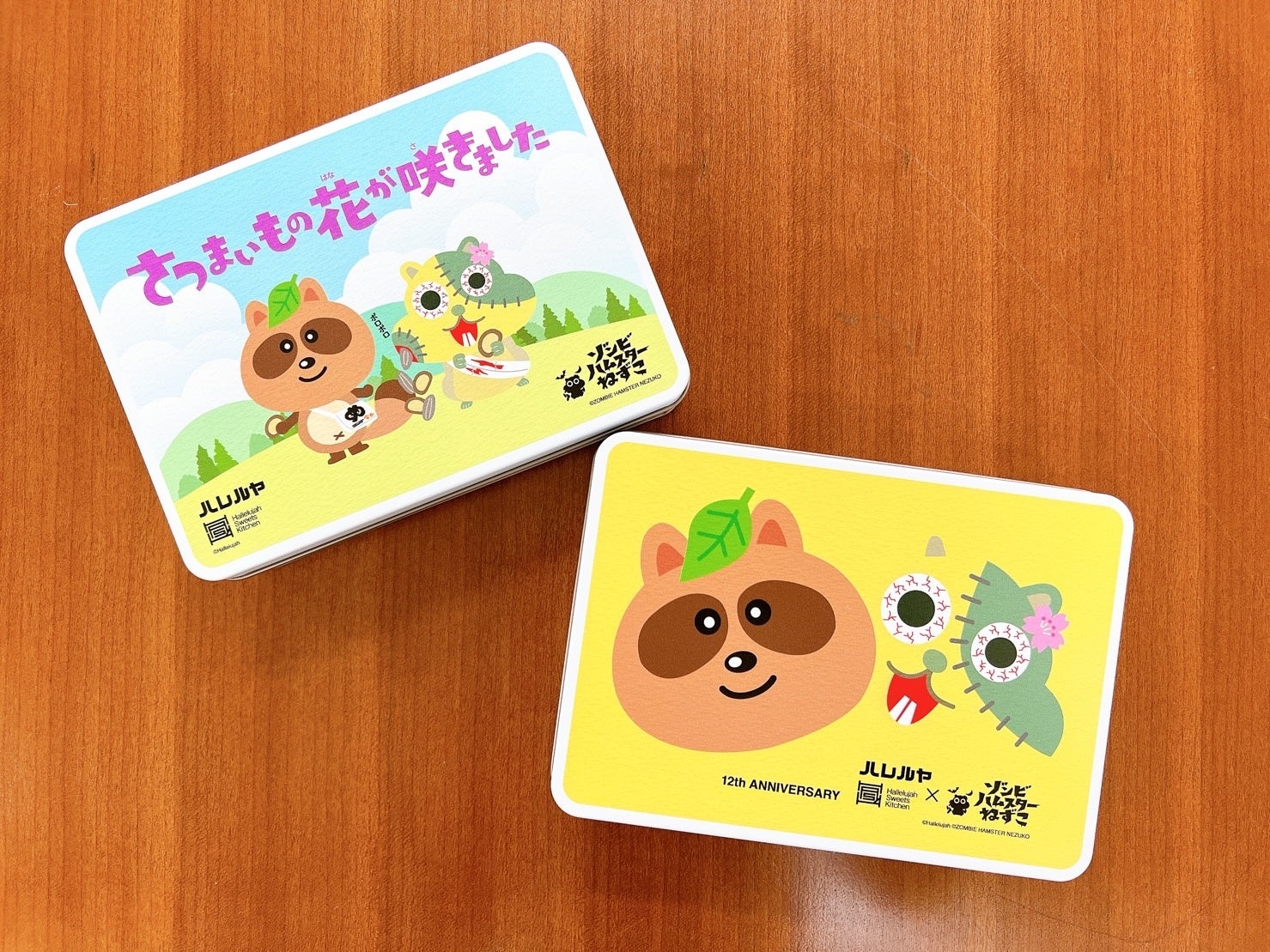 本商品は、人気絵本作家 原田たけし氏の代表作『ゾンビハムスターねずこ』の主人公”ねずこ”と、徳島銘菓「金長まんじゅう」を製造・販売する(株)ハレルヤの人気キャラクター”ハレたん”の2人が主役となった、オリジナル絵本の世界観をお菓子で表現したお菓子缶。めずらしい絵本入りのお菓子缶です。