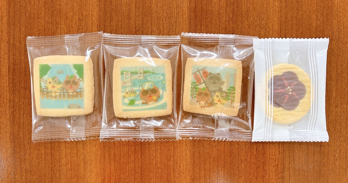 物語に登場する『さつまいもの花クッキー』は実際に製品としてお菓子缶に入っており、2人が旅した観光地の思い出写真をプリントしたクッキーも同封されています。見て楽しい!食べておいしい!絵本を読んだ後、クッキーを食べながら改めて絵本の世界観に浸ることができるので、是非お子様と一緒に楽しでいただきたい商品です♪