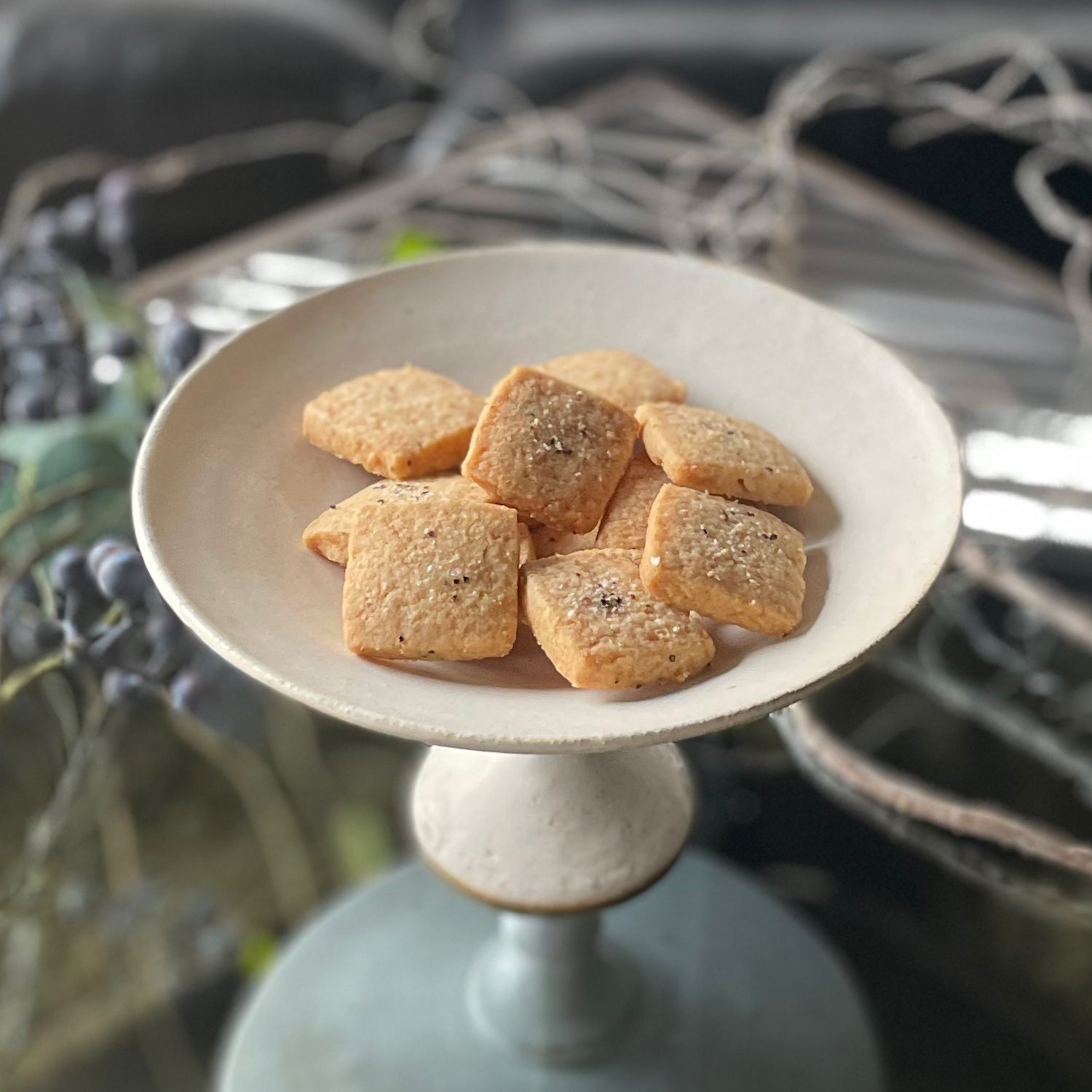 原材料:小麦粉(国内製造)、マーガリン、砂糖、アーモンドプードル、クルミ、ブラックペッパー、食塩加工品、食塩/香料、(一部に小麦・くるみ・アーモンドを含む)