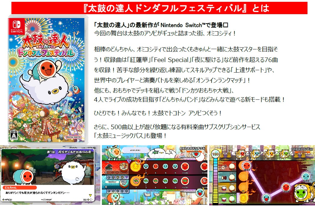 「太鼓の達人」の最新作がNintendo Switch™で登場︕