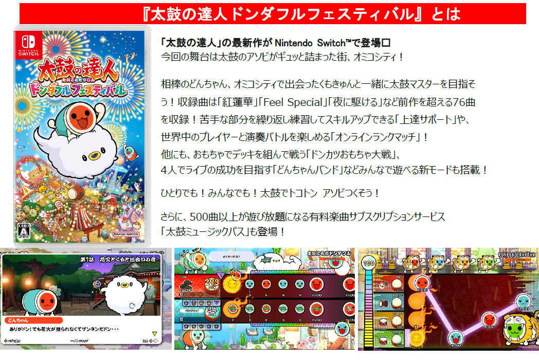 「太鼓の達人」の最新作がNintendo Switch™で登場︕