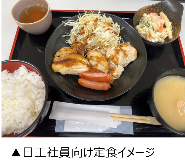 「美食庵あきつ」では、一般のお客様に対しては割烹料理店として地元食材をふんだんに使ったコース料理や一品料理を店舗1階で提供していくほか、2階スペースを日工社員向けに開放し、“まかない”としてワンコインで栄養バランスに優れた定食を提供してまいります。
