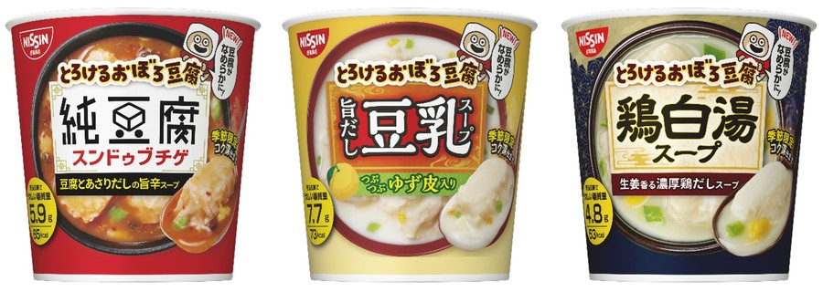 日清食品株式会社 (社長:安藤 徳隆) は、「とろけるおぼろ豆腐 純豆腐 スンドゥブチゲ」「とろけるおぼろ豆腐 旨だし豆乳スープ」「とろけるおぼろ豆腐 鶏白湯スープ」を8月7日(月)に全国でリニューアル発売します。