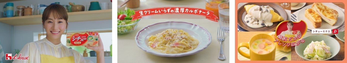 「シチューミクス」<クリーム>を活用したおすすめアレンジレシピとして『生クリームいらずの濃厚カルボナーラ』を藤本美貴さんが紹介するTVCMを、今年も全国でオンエアします。顆粒タイプだから好きな量だけ使えて溶けやすく、シチュー以外のメニューにも使いやすいことを、リニューアルを機にさらにアピールしていきます。