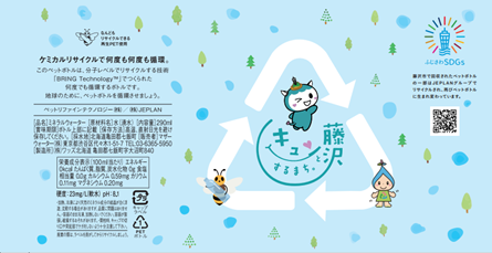 ペットボトルのデザインには、藤沢市の公式マスコットキャラクター「ふじキュン♡」のほかに、藤沢市資源循環協同組合キャラクターの「えこりちゃん」、JEPLANの何度でも生まれ変わる循環のシンボルであるハチマークをあしらったデザインで、「ふじさわSDGsロゴマーク」も描かれています。
