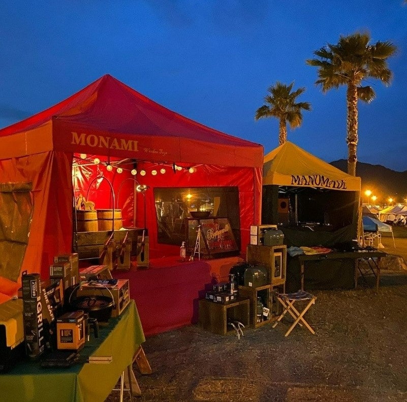 「MANOMADE」の射的 射的(1回7発分)1,100円 夏フェスでも大人気! システムエンジニアや鉄工・石工・木工職人で形成された大阪・北摂発のクリエイティブ集団「MANOMADE」の射的ゲーム。“森、道、市場”などの大型フェスにも出店し、毎回人気を集めているのだとか。空間や景品など、その全てが今までの射的にはない斬新なもの!ぜひこの機会にご体験ください。