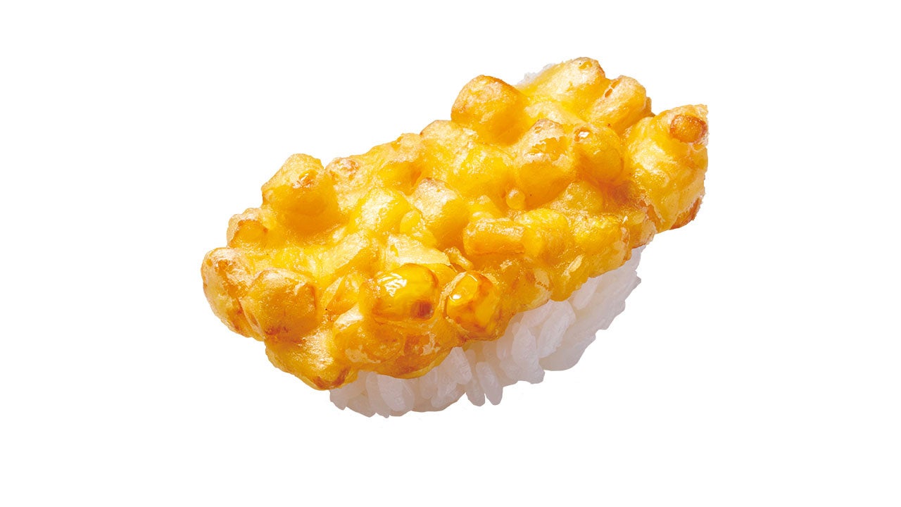 今回のフェアでは、噛むたびに口の中に旨みと甘みが広がる「大粒蒸しほたて(青森県産ほたて使用)」や甘みのある真いかに相性抜群な大葉とおろし生姜を添えた「大葉真いか握り」、コーンの粒々と衣のサクサク食感のコントラストがクセになる「コーンの天ぷら握り」などの100円(税込110円)皿をはじめとする多数の旨ねたをご用意しました。「コーンの天ぷら握り」は、卓上の“九州風さしみ醤油”をかけると、夏の屋台を連想させる焼きとうもろこしのような味わいをお楽しみいただけます。