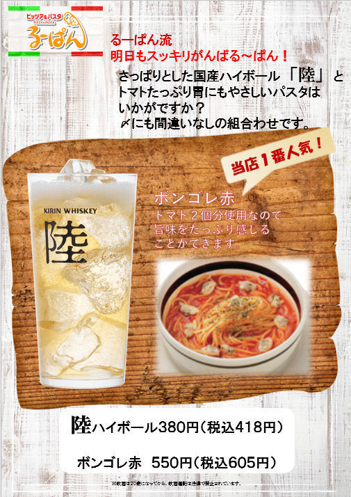 〆はやっぱり「ボンゴレ 赤スパゲッティ」。「キリンウイスキー 陸ハイボール」とのペアリングがおすすめです!