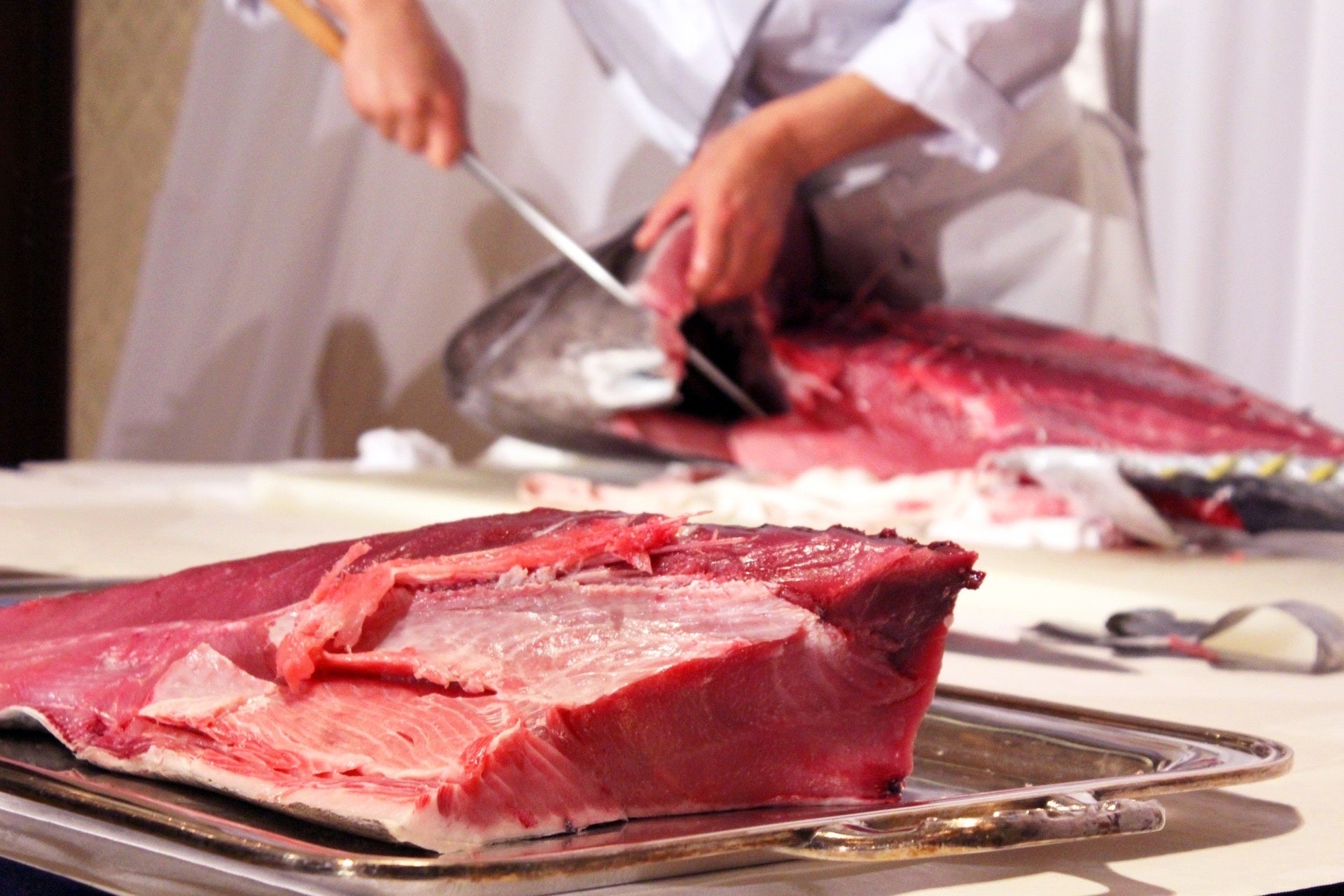 70㎏オーバーのマグロの解体ショーで解体したマグロを無料配布します!!