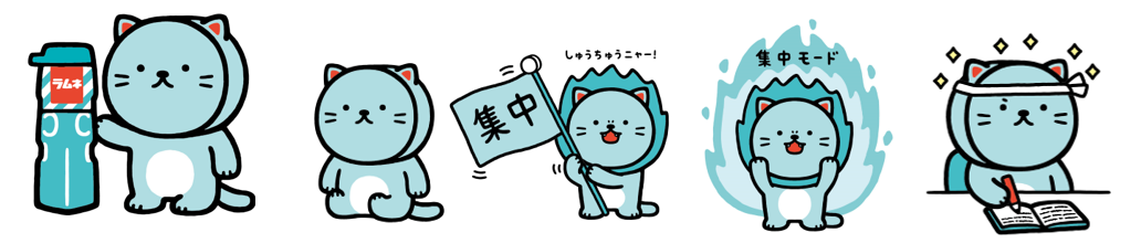 勉強をしているものの、いまいち集中できていない「ラムねこ」が登場。そんな「ラムねこ」を見かねた「しゅうチュー」は、素早くラムネを差し出す。ラムネを口にした「ラムねこ」はライオンのような姿になりますに。勉強する「ラムねこ」と、応援する「しゅうチュー」の様子がかわいらしい動画です。