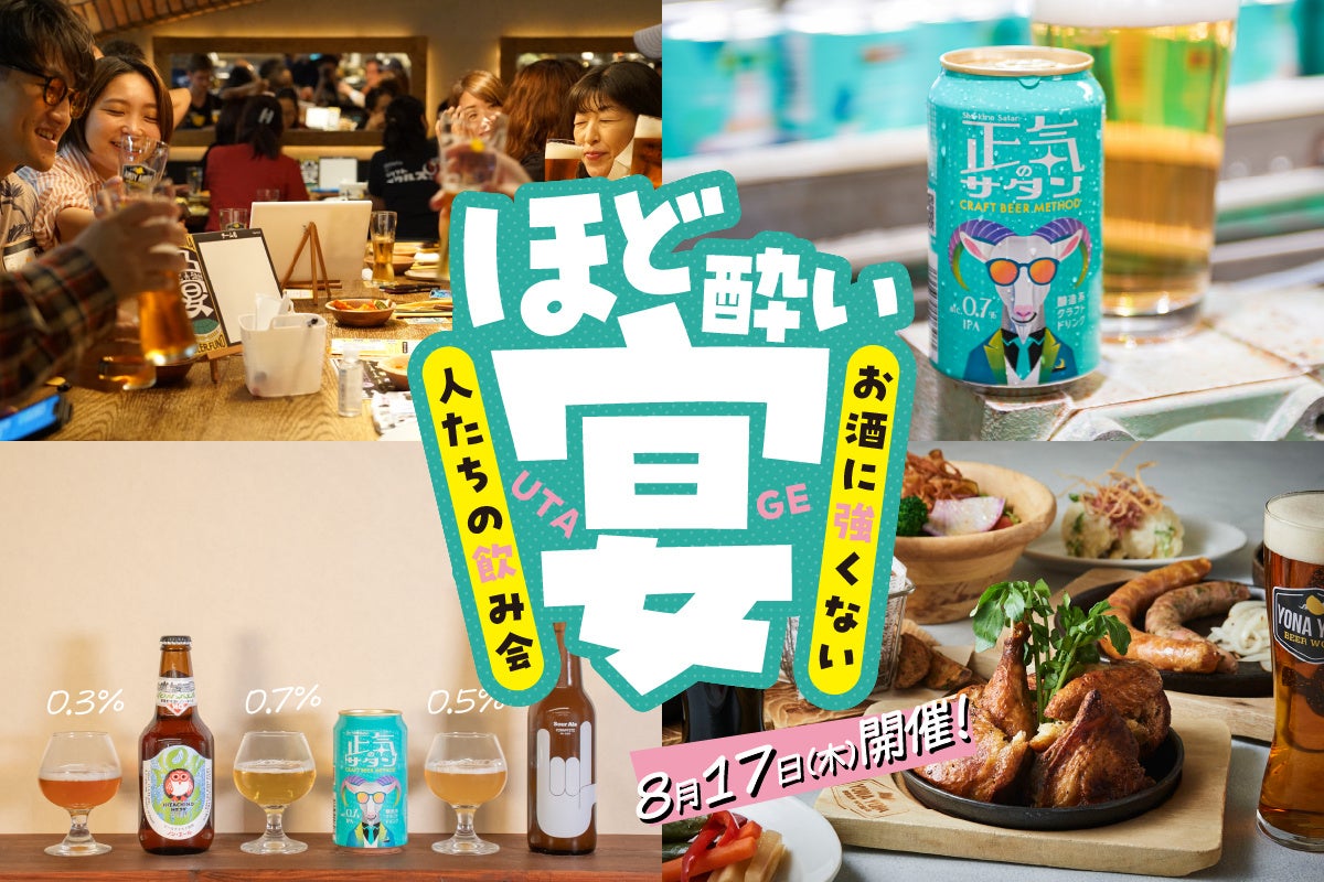 お酒は好きだがお酒に弱い体質の方々でも、ビアレストランで楽しみながらクラフトビールの世界を体験できる”「お酒に弱い人」だけを集めた宴会”を、8月17日(木)に都内で開催します。「ビールに味を!人生に幸せを!」をミッションに掲げるクラフトビールメーカーとして、個性豊かなビール体験を、アルコールに強いお酒好きだけでなく、体質的にたくさん飲めない方々にもお届けしたい思いから、「お酒に弱い人も気兼ねなく集い楽しめる宴会」を企画しました。「お酒に弱い人」が抱える飲み会における課題に対して、アルコール度数0.7%IPA「正気のサタン」を製造するクラフトビールメーカーならではのやり方で向き合います。