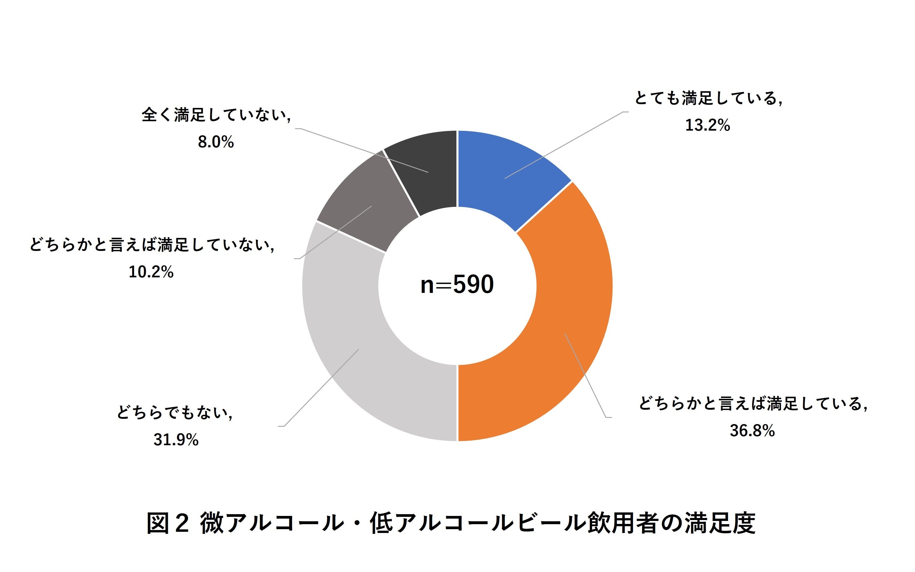 また、飲用経験者に微アル・低アルビールの満足度を聞くと、「満足している」「どちらかというと満足している」の合計が50.0%と、飲用経験者の2人に1人がこれらのカテゴリの製品に満足していることが分かりました(図2)。