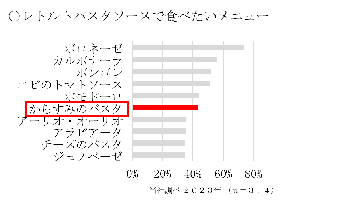 定番メニューに次いで喫食意向が高く、高価格帯パスタソース市場の品揃えにおいて欠落している「からすみ」に着目しました。