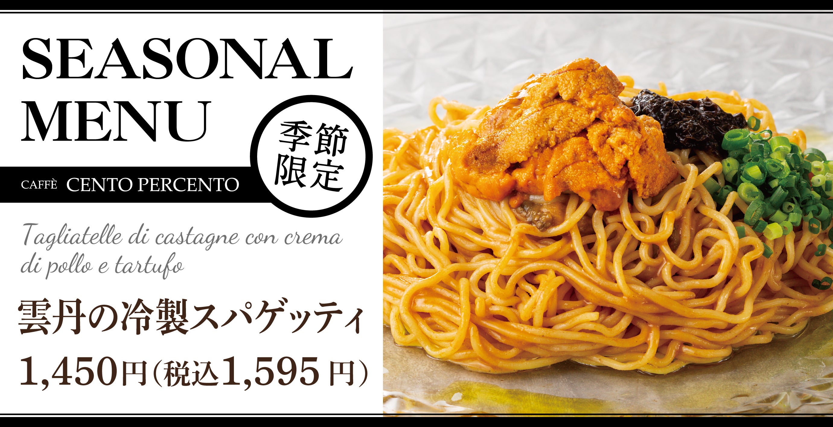 ホームセンターを中心に出店し、本格イタリアンで日常に上質感を味わうカジュアルレストラン「チェントペルチェント」にて、夏の風物詩として販売開始のお問い合わせを数多くいただいている「雲丹の冷製スパゲッティ」を今年も雲丹をより感じるソースに刷新し、期間限定で販売いたします。