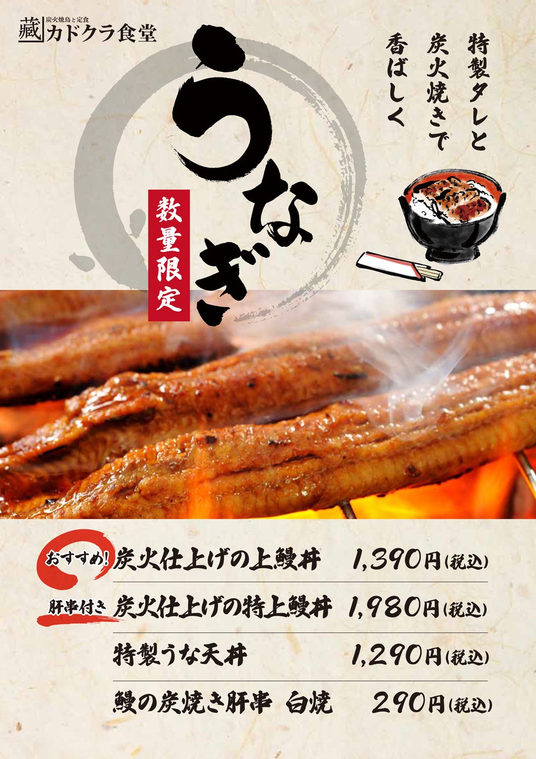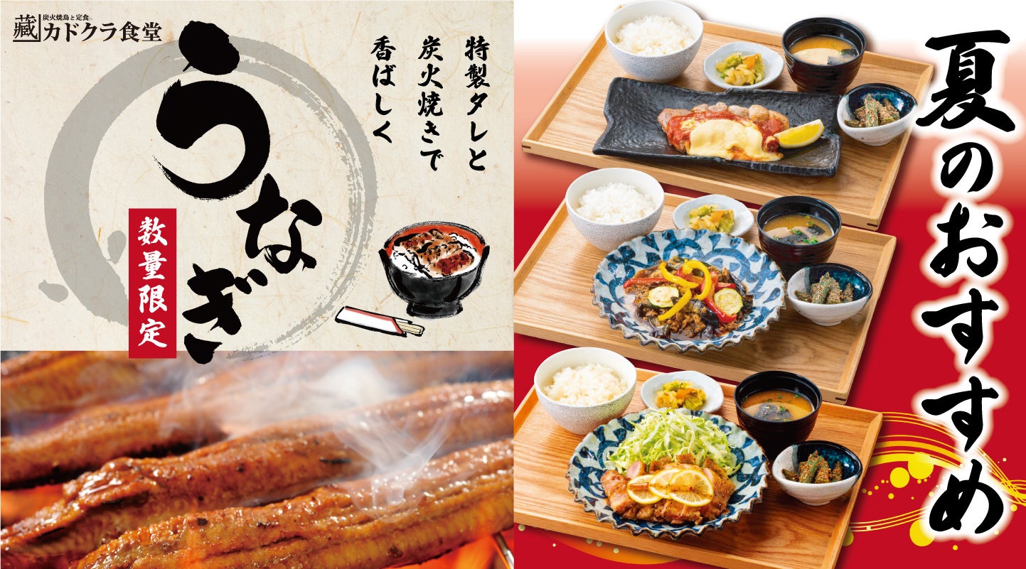 ぜひこの機会に「炭火焼鳥と定食 カドクラ食堂」の『鰻メニュー』と『夏のおすすめ』で、外食を楽しみながらしっかりとスタミナを付け、暑さを乗り切りましょう!