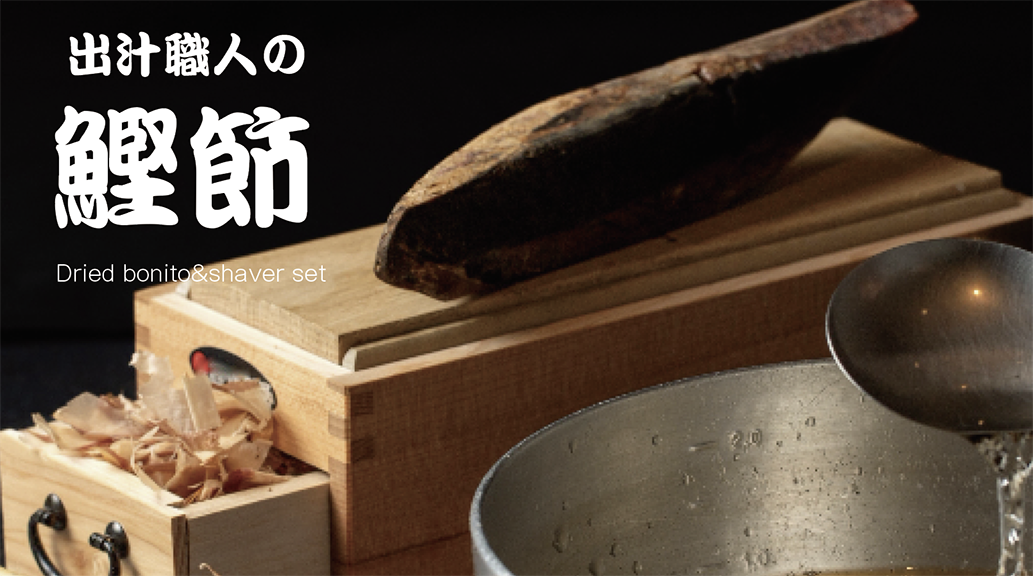 鰹節は削りたてが最も美味しいと言われます。そこで、削り立てをお楽しみいただくために鰹の旨みを凝縮したブロック状の「本枯節」と「かんな(鰹節削り器)」のセットをメインに展開しました。