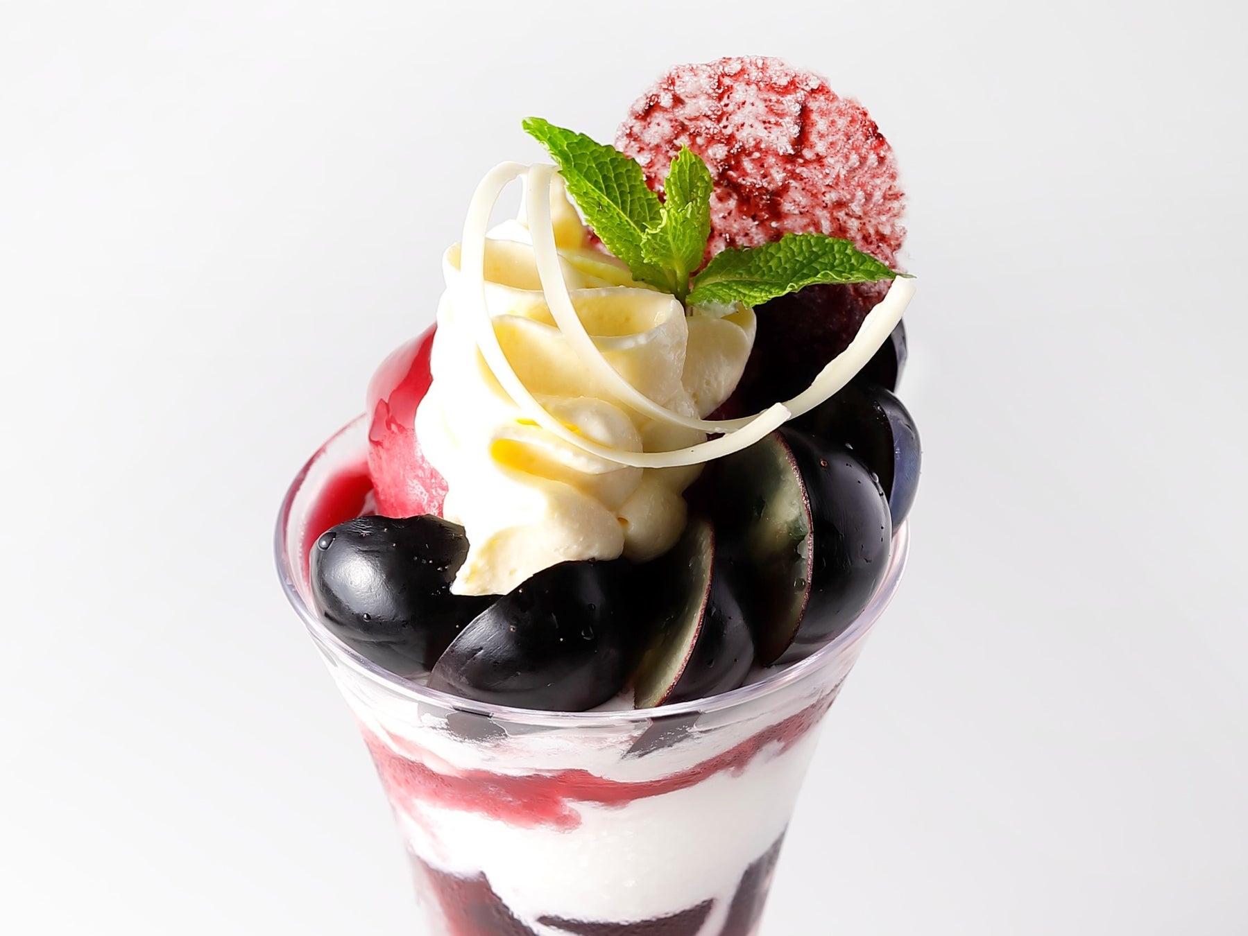 “ナガノパープル”は長野県がオリジナルで開発した ぶどうの品種。甘味が強く、酸味はおだやかです。 豊かなぶどうの香りとジューシーな果肉の魅力を パフェで存分にお楽しみください。