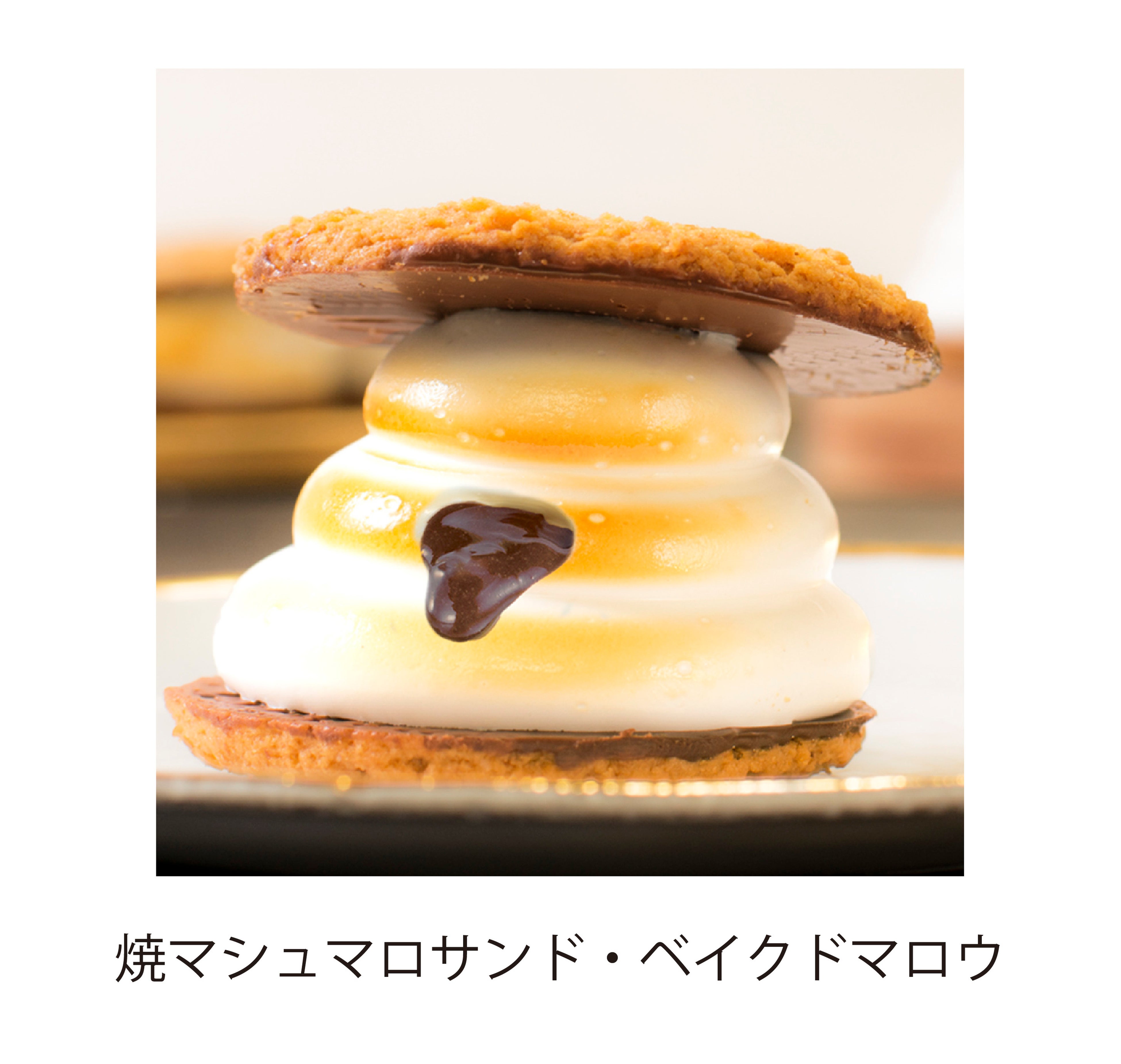 じっくりと煮詰めた香ばしいカラメルを加えた【ベイクドマロウ】自慢のふわふわマシュマロの表面を丁寧に焼き上げました。アクセントにフランス産ロレーヌ岩塩を効かせています。