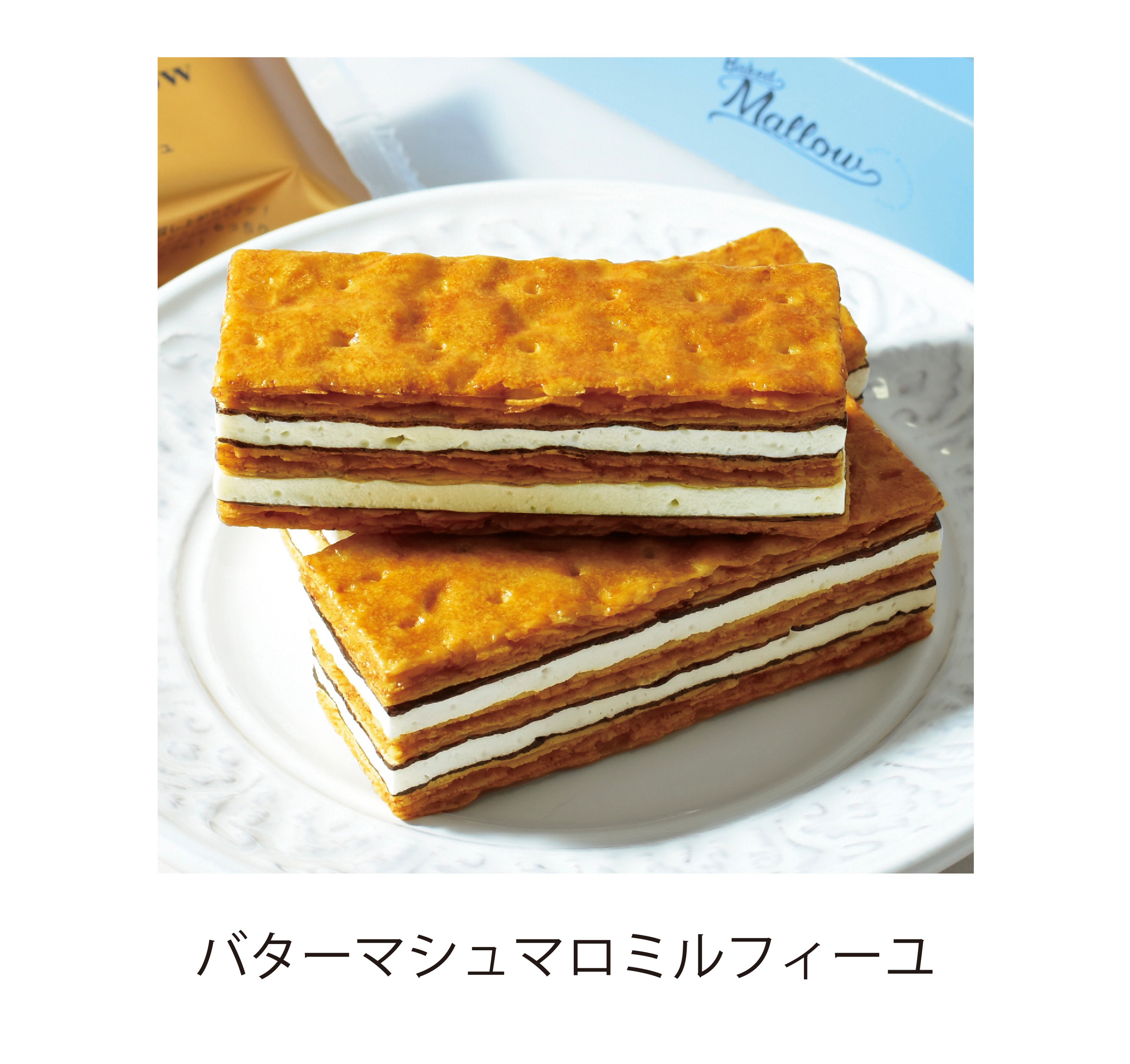 JAL国内線ファーストクラス機内食にも採用された看板商品「焼マシュマロサンド・ベイクドマロウ」や、ピスタチオ好きにはたまらないピスタチオづくしの「ピスタチオチョコブラウニー」、バター100%のパイと濃厚なバターマシュマロを重ね合わせた「バターマシュマロミルフィーユ」、贈り物に最適なアソートギフトなど様々なラインナップをご用意しております。