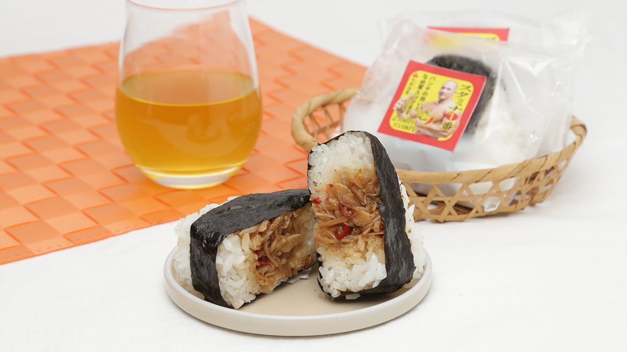岐阜県のなめ茸製造メーカー、山一商事が地元の自衛隊から「スタミナのつくようなご飯のお供はないか?」という声から誕生したご飯のお供「スタミナ①番」を中具にしました。にんにくの効いたピリ辛なめ茸です。