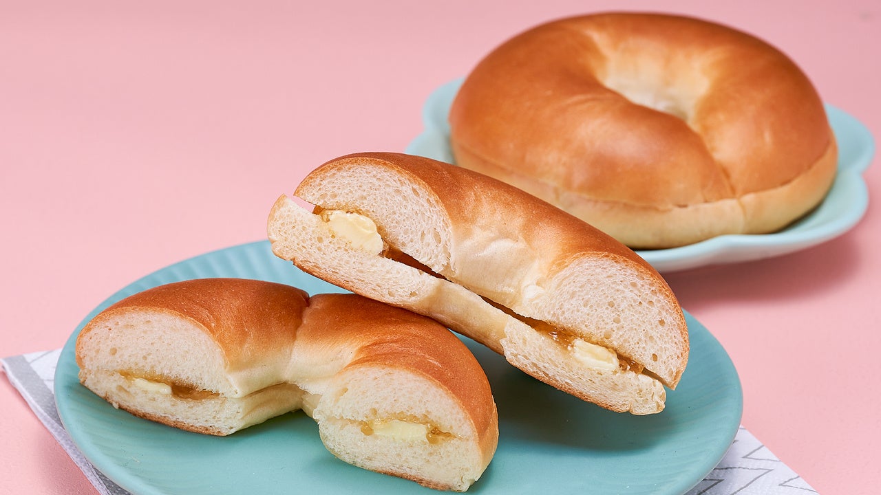 もっちり食感のベーグルにはちみつとマーガリンをサンドしました。はちみつの甘さにマーガリンのコクが加わり、スイーツのように楽しめるフレーバーです。