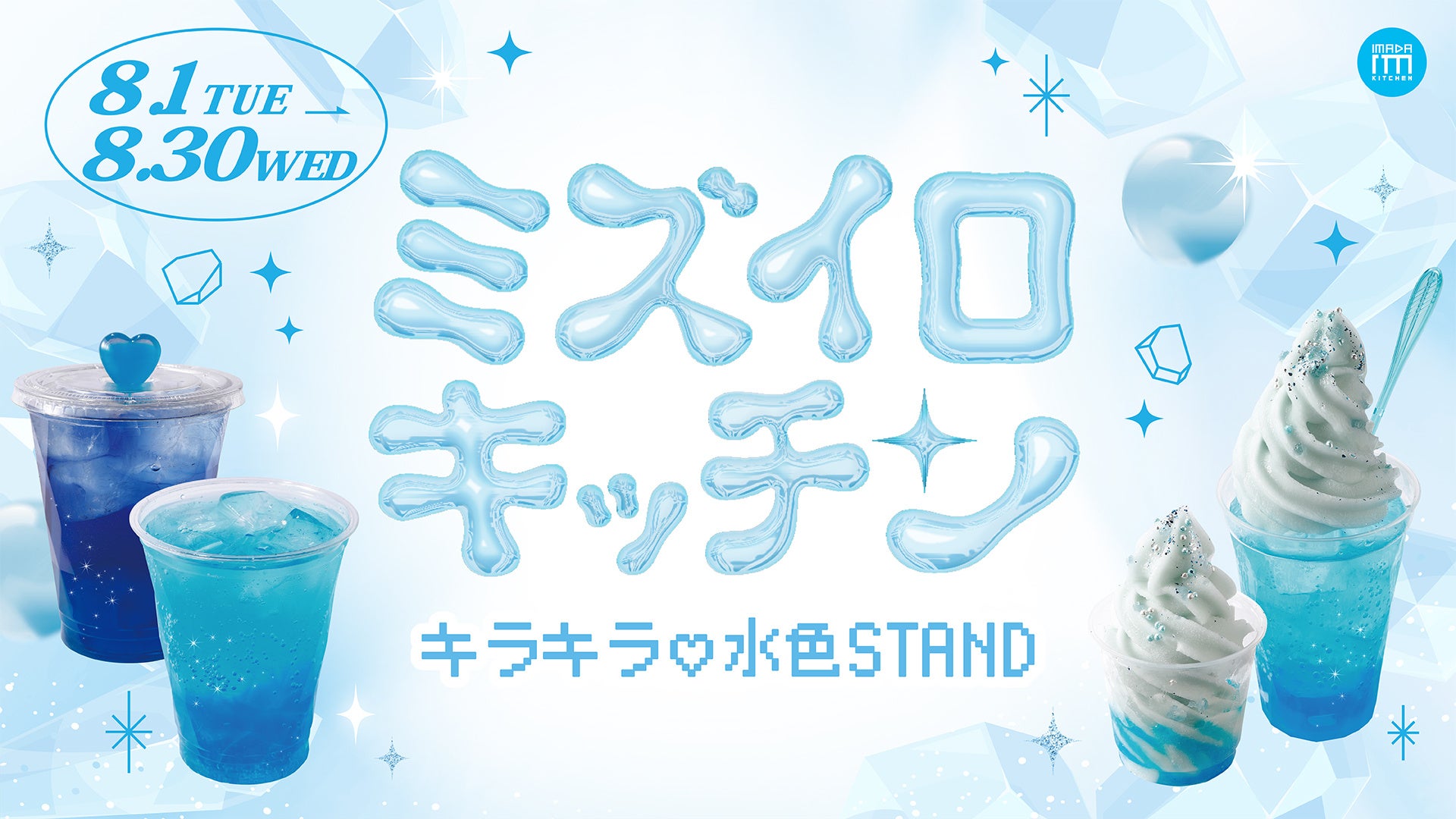 イマダ キッチンは、“未だ”世に出ていない渋谷発のオリジナルフードを発信するフードブランド開発事業です。今回「ミズイロキッチン」として提供するのは、夏の海を模したブルーサイダーや、色の変化が幻想的なグリッターティー、氷から削り出したかのように涼やかなソフトクリーム。