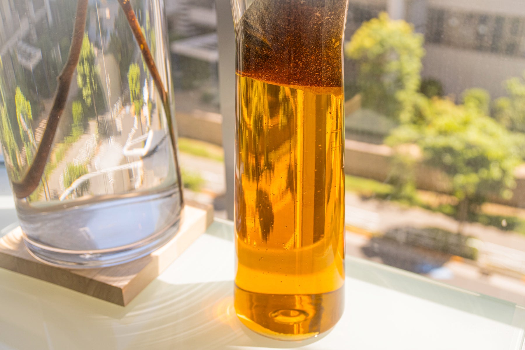 常温の水でゆっくり抽出することにより、コーヒーの渋味やえぐ味の原因となるタンニンが溶け出さず、最初は透き通ったお茶のような色合いになっていきます。
