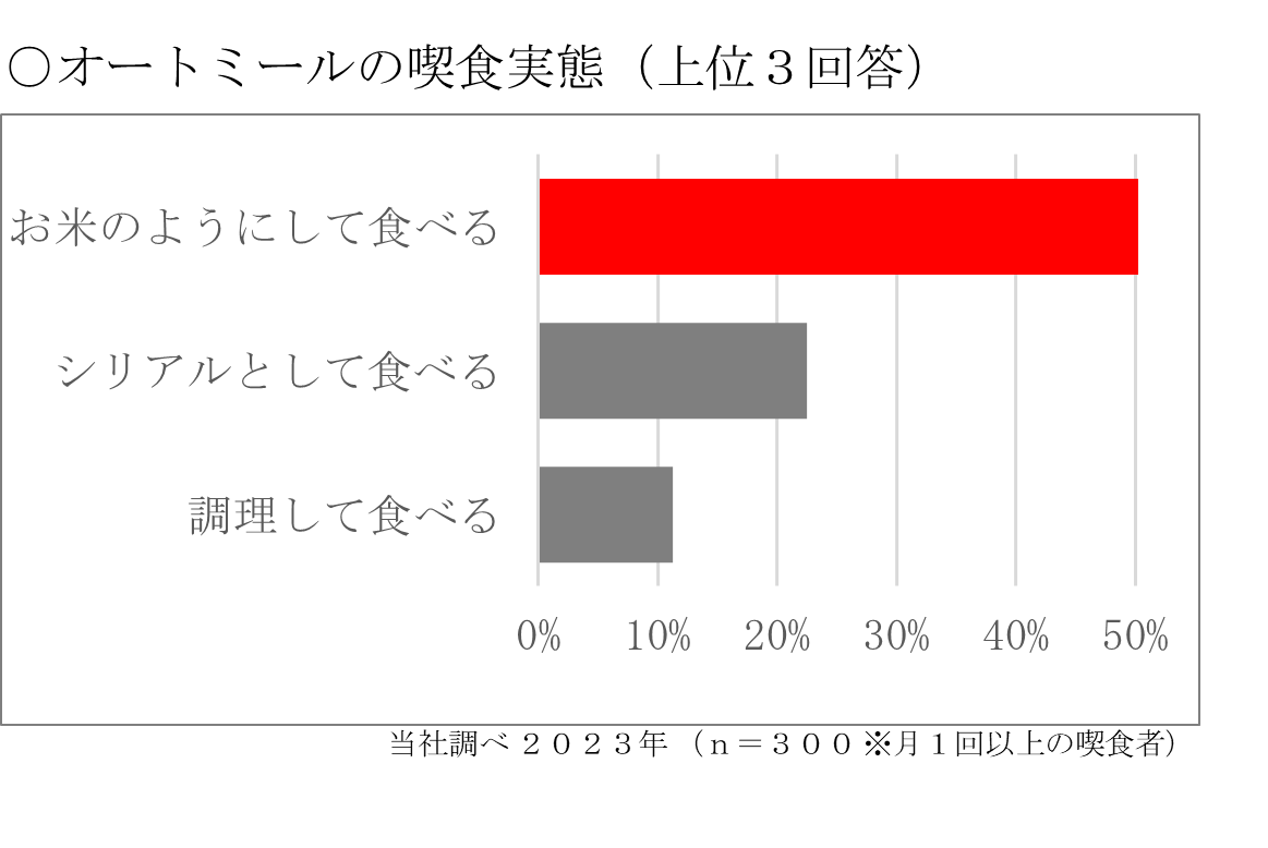 また、オートミールは電子レンジ調理をすることでお米のような粒立ちや食感が楽しめるため、白米の代替として食べられているという実態があります。